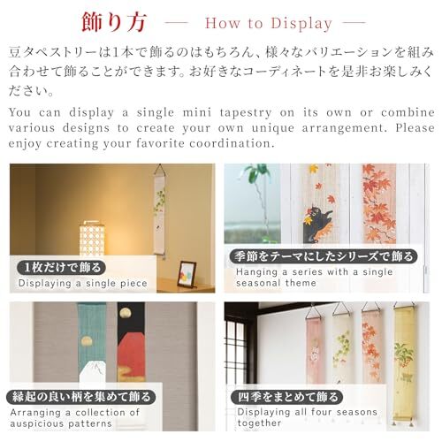 飾り方:豆タペストリーは1本で飾るのはもちろん、様々なバリエーションを組み合わせることができます。お好きなコーディネートをぜひお楽しみ下さい。