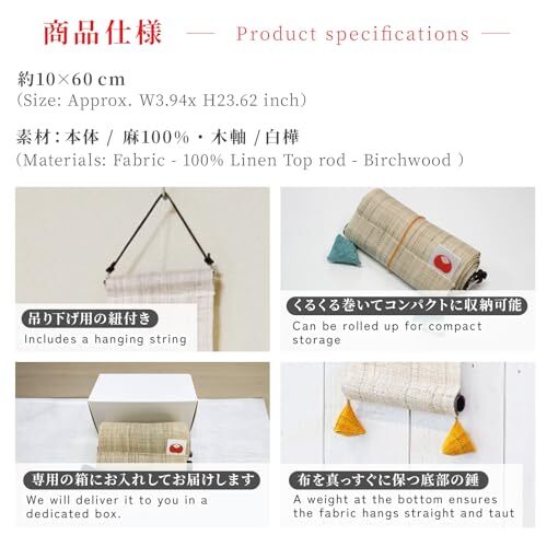 生産地:(企画・デザイン)日本製・(生産)中国製 / 素材:(本体使用生地)麻の織布 No.1・(本体)麻 100%・(棒 )白樺