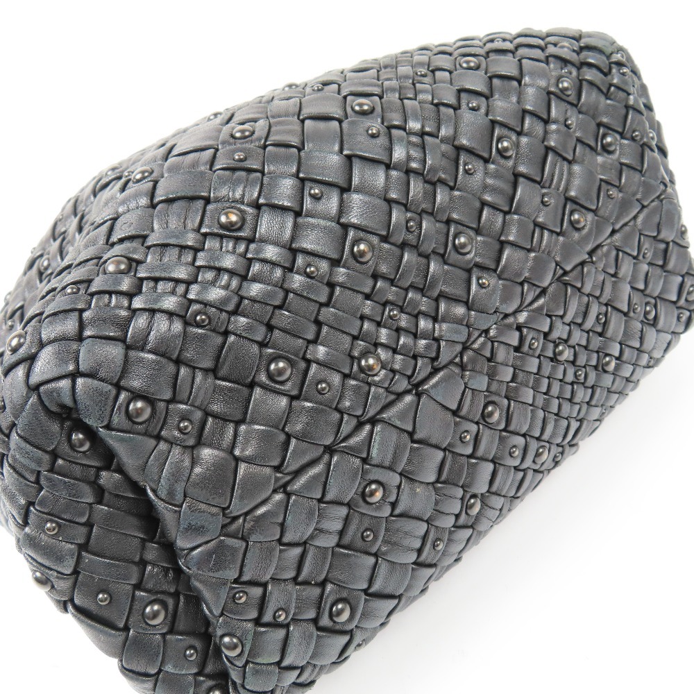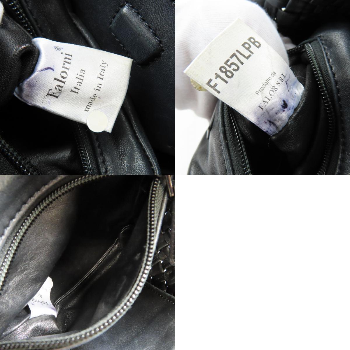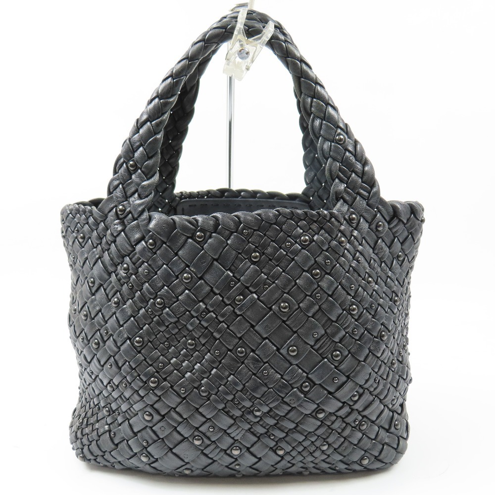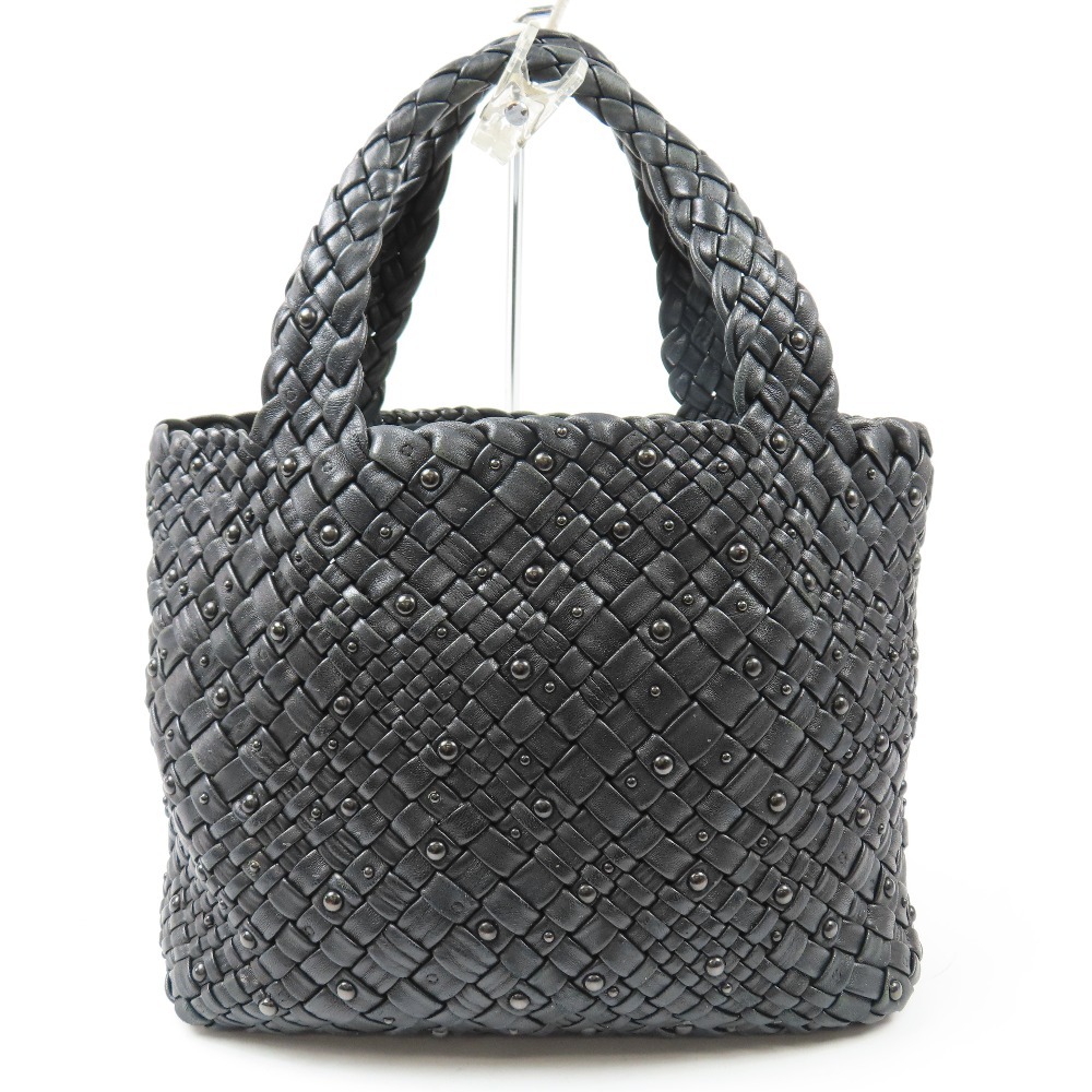 203898★1円スタート★ 美品 FALORNI ファロルニ イントレチャート 編みこみ スタッズ ハンドバッグ ラムスキン ブラック