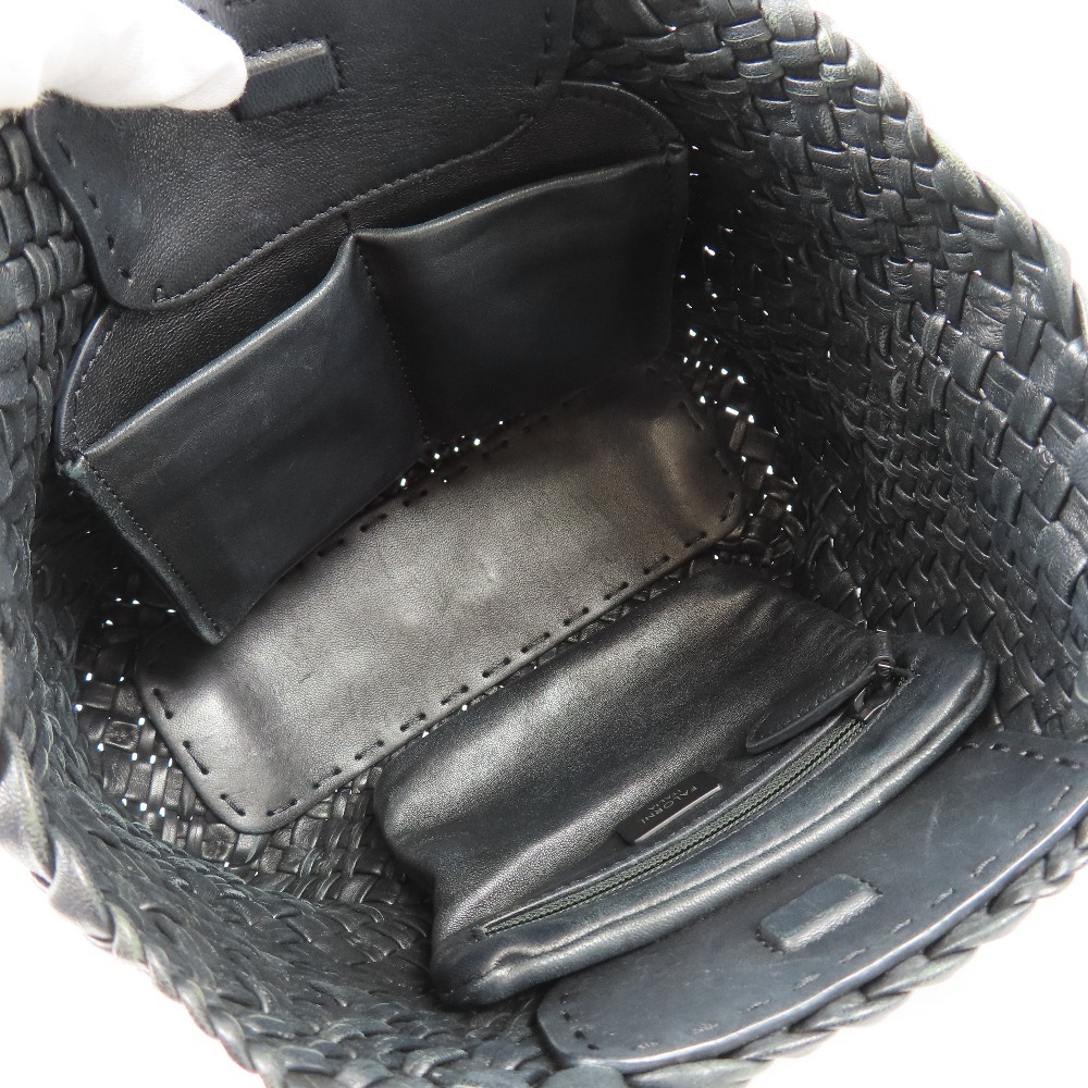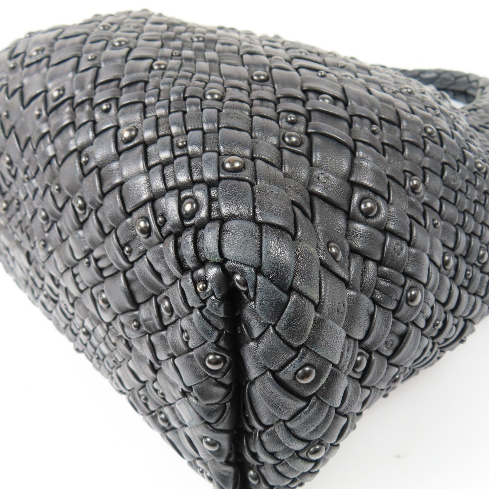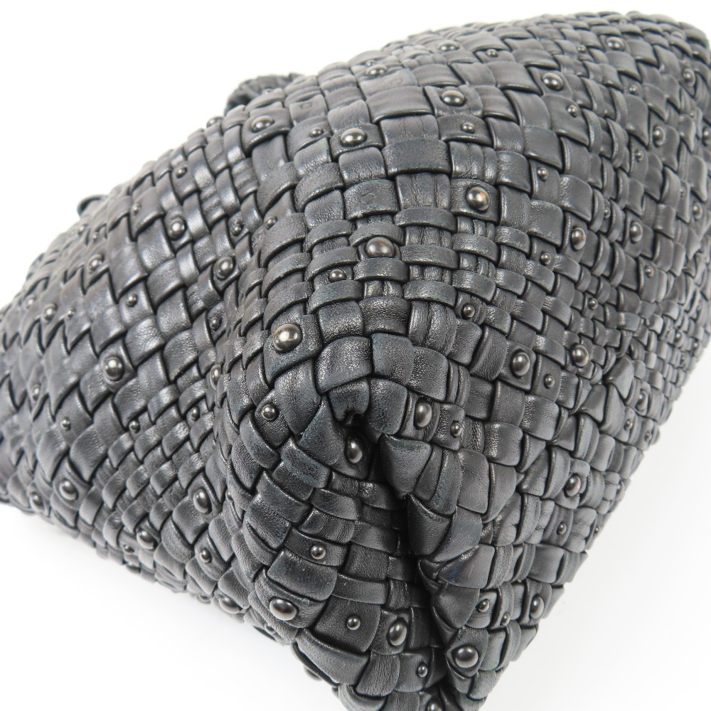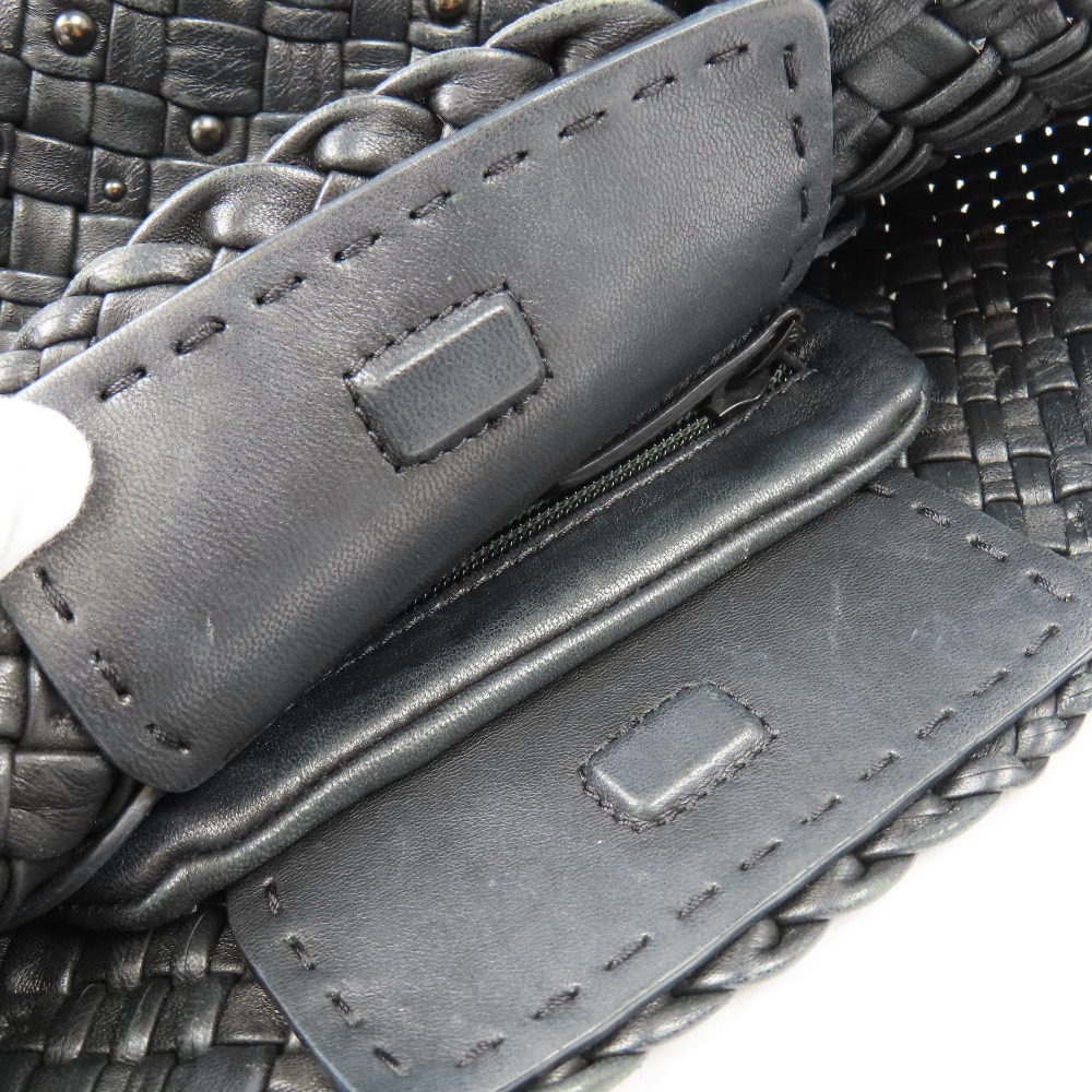203898★1円スタート★ 美品 FALORNI ファロルニ イントレチャート 編みこみ スタッズ ハンドバッグ ラムスキン ブラック