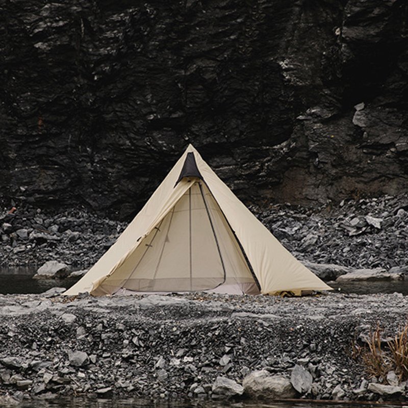 即納*ワンポールピラミッドテント 2-4人用 ピラミッドテント 4シーズン 収納バッグ 簡単設営 キャンプ用品 軽量 通気性 防風防雨 ベージュ