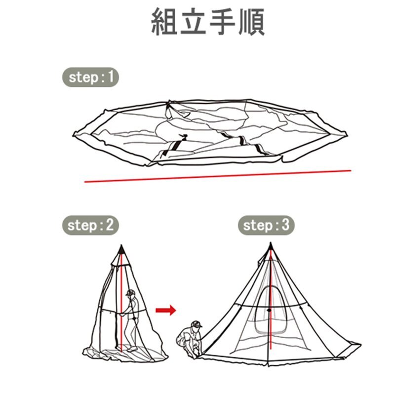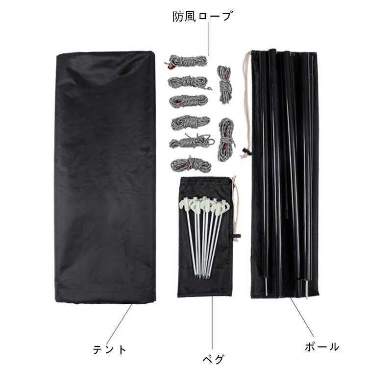 セット内容:テント本体*1、防風ロ一プ*6、ぺグ*6、ポ一ル*1、収納袋*1