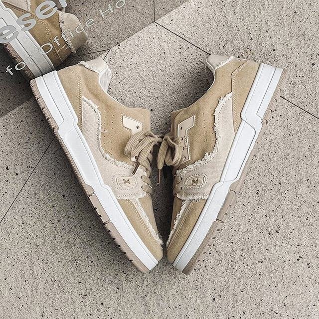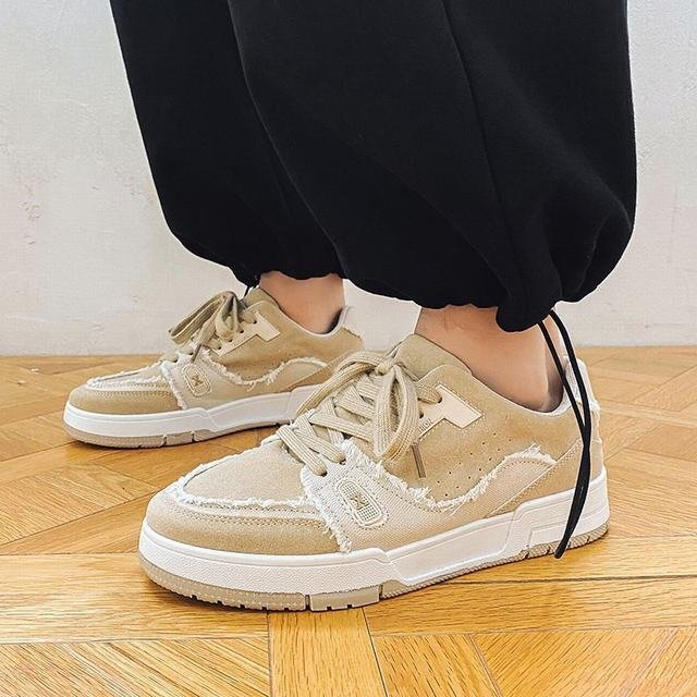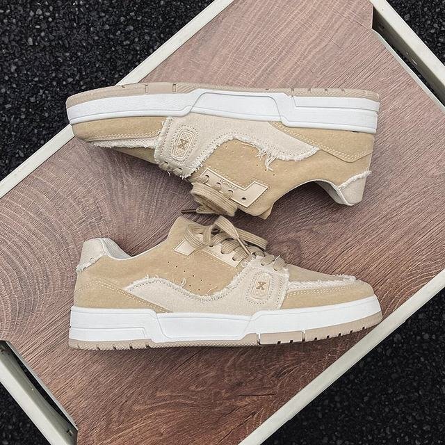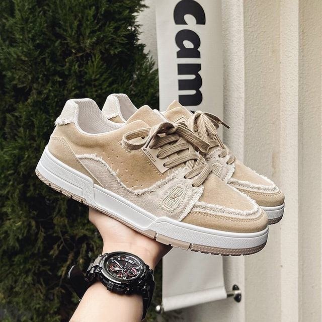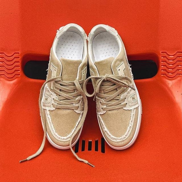 スケーボーシューズ スリッポン スニーカー メンズ シューズ 靴 ぺたんこ カジュアル デニム風 歩きやすい ベージュ 25.5cm