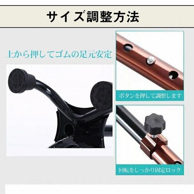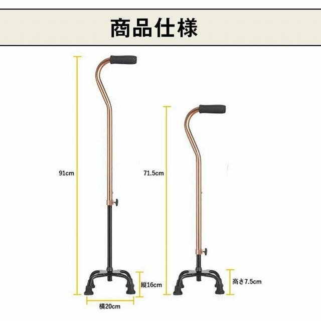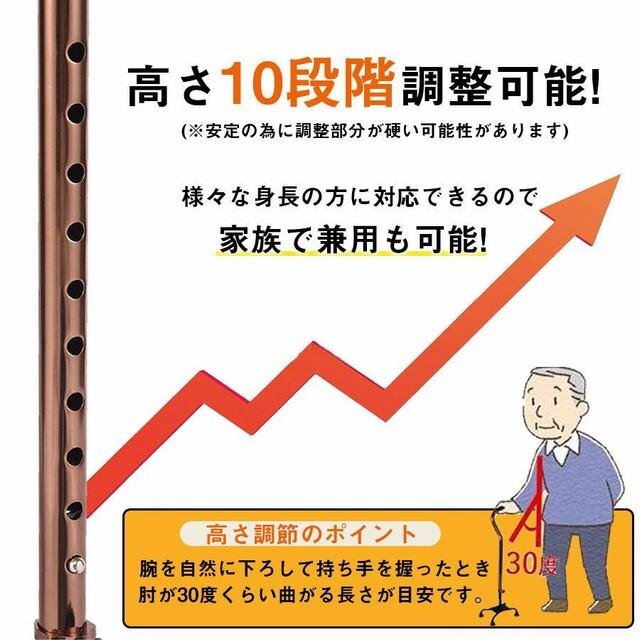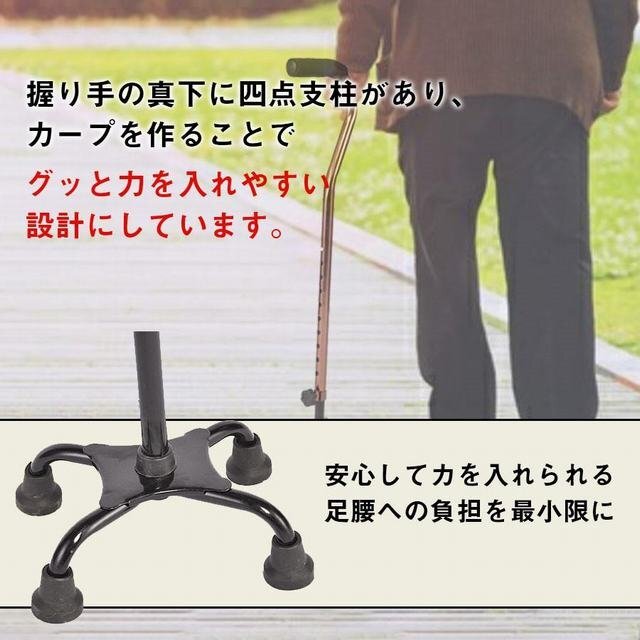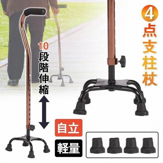 杖 4点杖 介護 ステッキ 高さ調節可 10段階伸縮 アルミ 自立 四点杖 伸縮式 軽量 女性用 男性用 高齢者