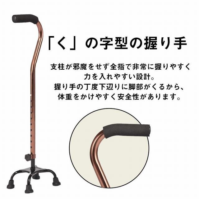 4点支柱杖は、重心が低く安定しているため、一本杖では不安定だった方にお薦めです。