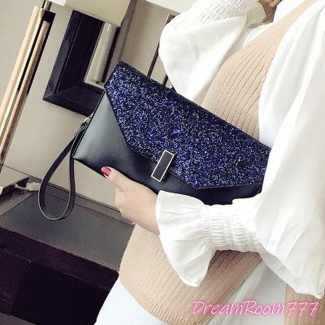 kira グリッター スクエア クラッチBAG 【ブラック】革 レザー ハンドバッグ 海外セレブ K-081-7