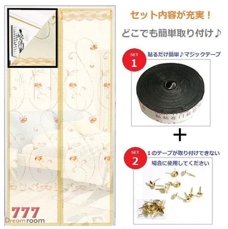 自動開閉☆どこでも設置OK!網戸カーテン 80cm×200cm マグネット 蚊 害虫 マジックテープ 目隠し 虫よけ ネット I-045