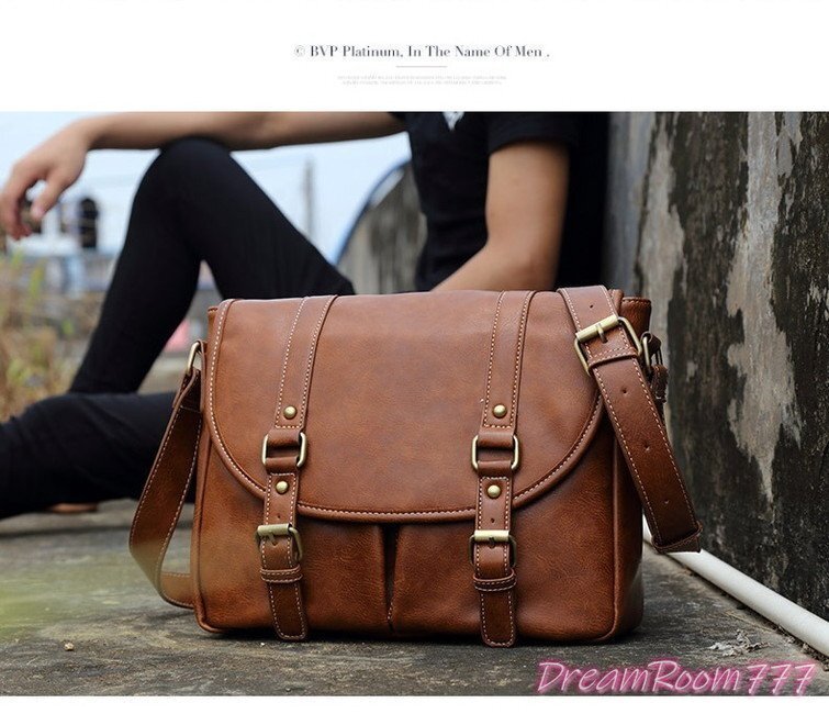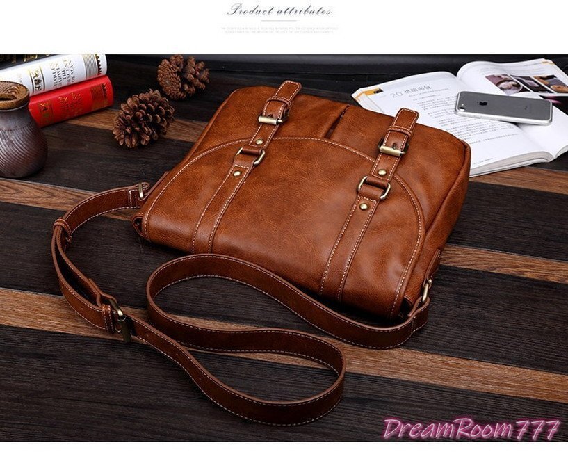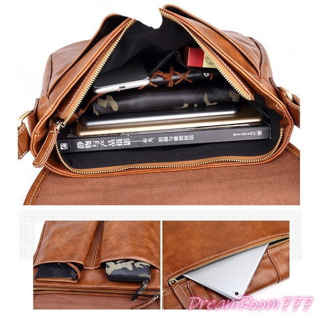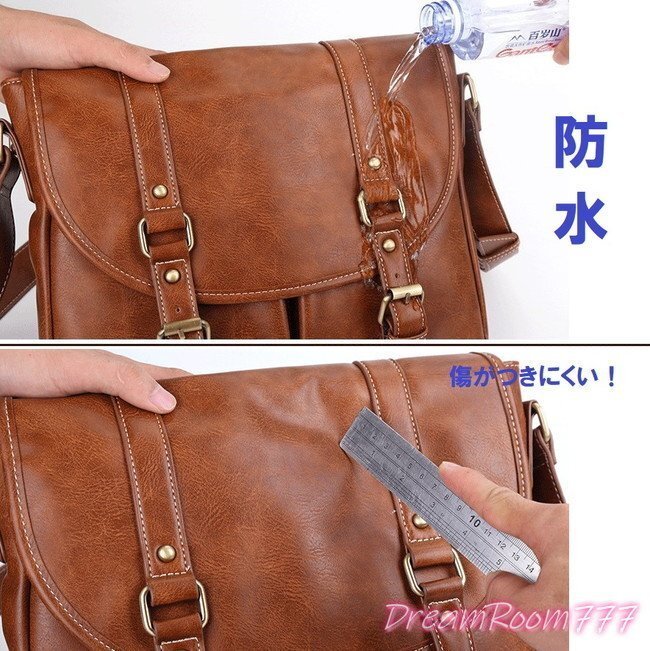 大容量 men's ショルダーバッグ PCバッグ ビジネス BAG 【ブラウン】 防水 旅行 通学 通勤 パソコン K-098-2