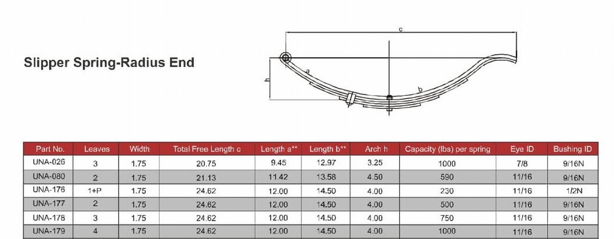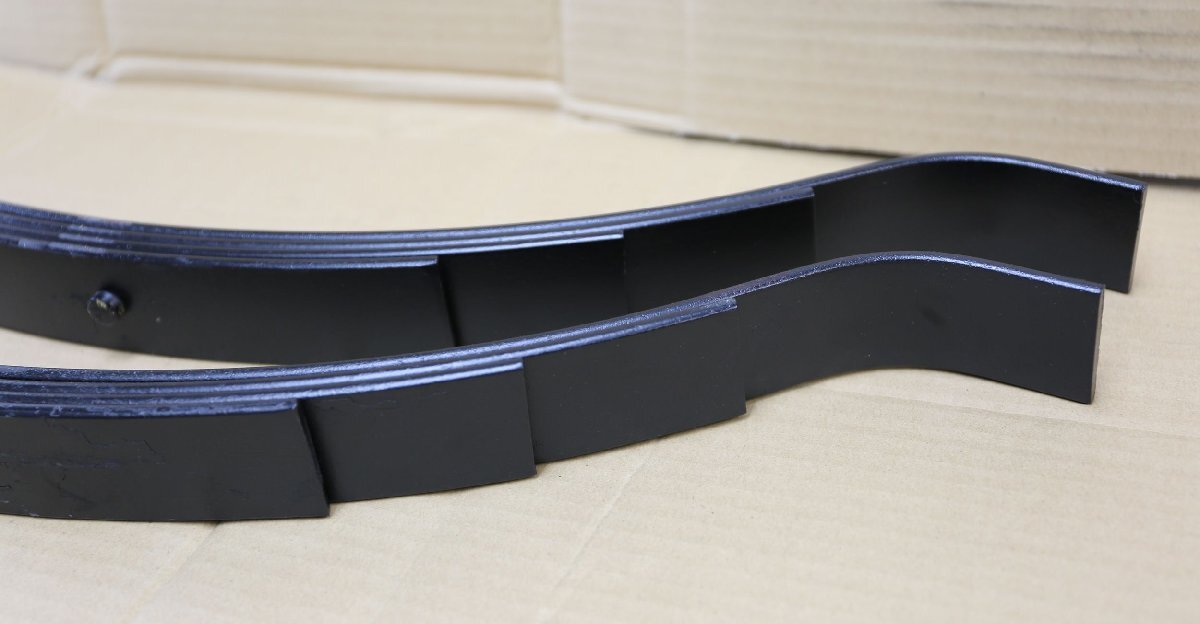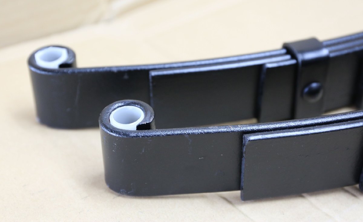 81196 L&H LongRun リーフスプリング 2枚セット 1000LBS ・推奨トレーラー:トレーラー車両総重量 450KGS 以下用 ・アメリカ LONG RUN 社製 #81196 ・L&H社製 UNA-179 上記と同等品 ・トレーラー用リーフスプリング 4枚リーフ ・1枚耐加重 1000LBS = 453KG ・全長 24-5/8”=約 626mm 写真参照 ・有効長 23-1/2”=約 598cm ・リーフ幅=44.2mm、リーフ厚み4枚=24.3mm ・リーフ厚み1枚=約6mm ・アメリカ製のトレーラーに使用可能 ・大変強固です! ・取り付けボルト&ナット フロント側 2本付 ・新品未使用品 ・内容:2枚入り (2枚で1台分です!) 【注意】箱なし、TDと同じ商品ですが仕入先変更 【重要事項】【注意】この商品は組み立て、設置がお客様自身のため、事故、傷、損傷等のクレームは 一切お受けできません。自己責任においてご使用ください。ご了承いただいてご使用ください。