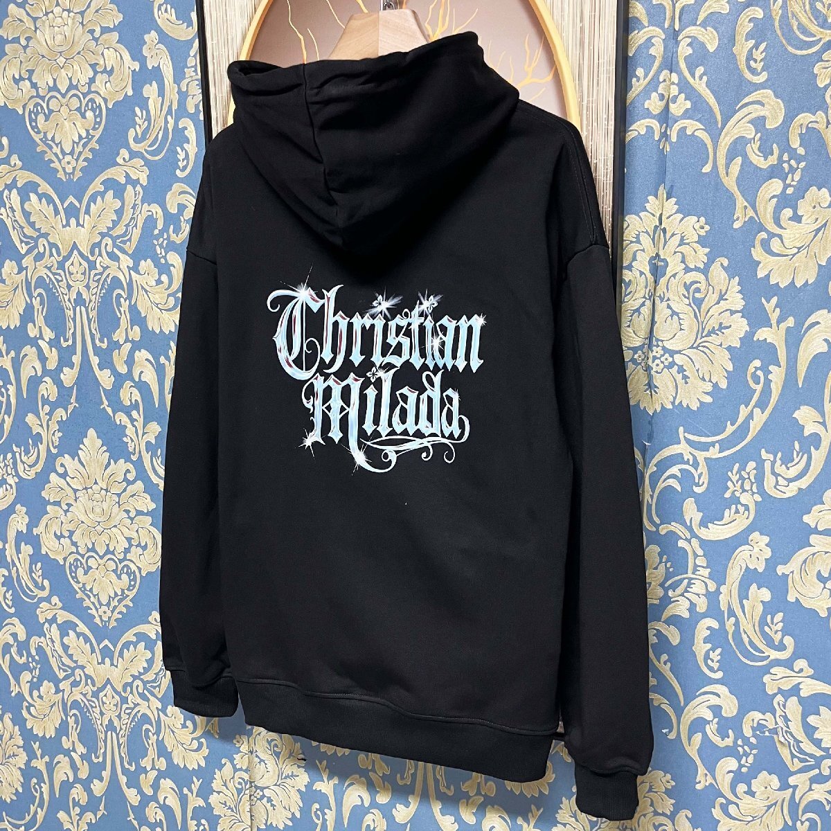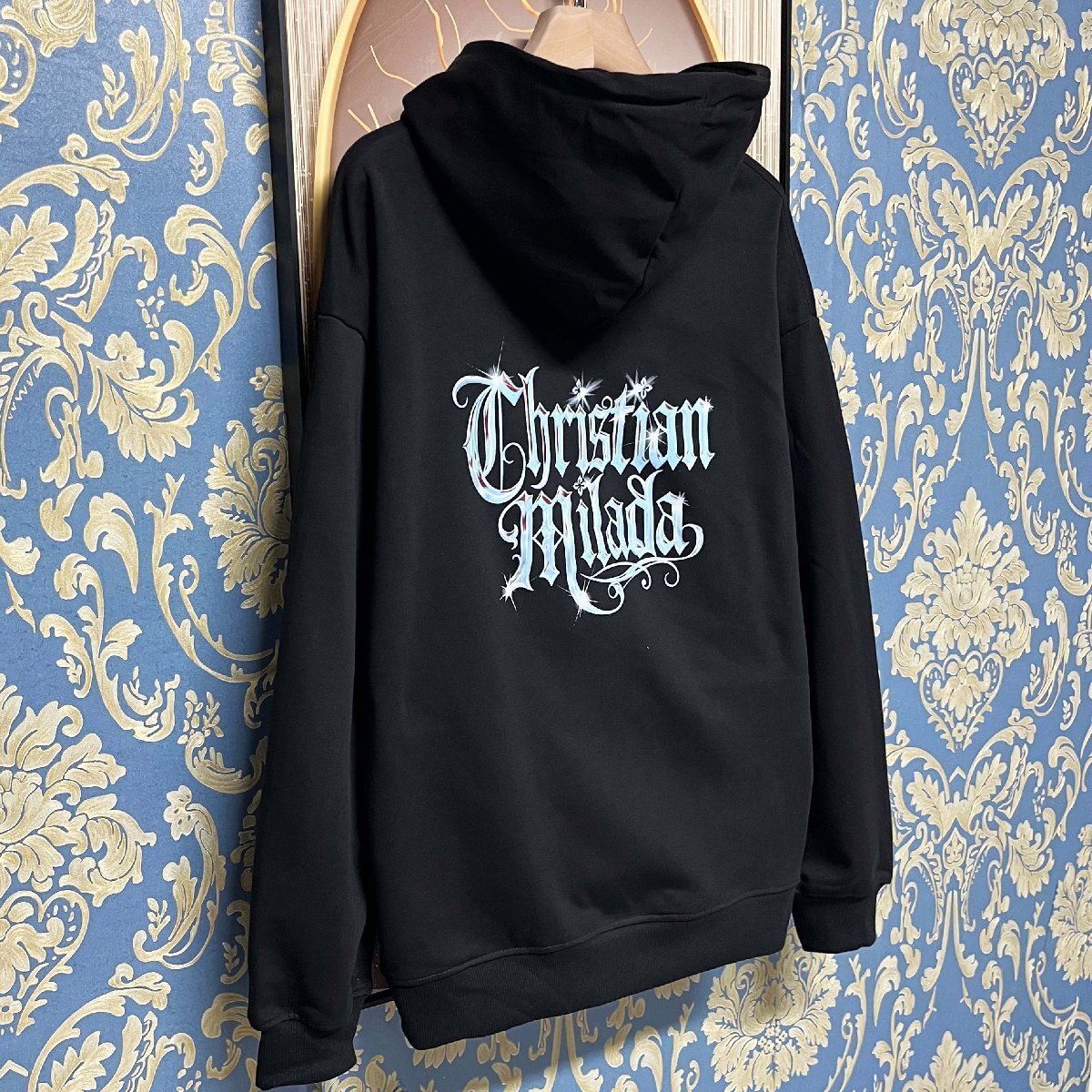 定価4万★christian milada・ミラノ発・パーカー★綿100% ソフト 暖かい ロゴ お洒落 ゆったり カジュアル トップス トレーナー 長袖 普段着 秋冬 M/46サイズ