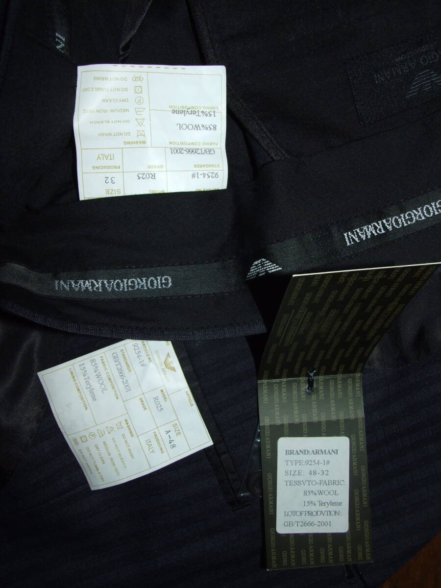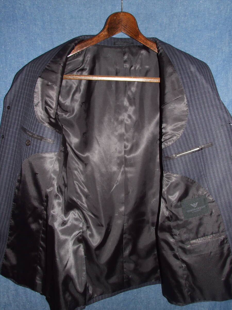 GIORGIO ARMANI/ジョルジオ アルマーニ/LE COLLEZIONI,セットアップスーツ、外出未使用品です。MADE IN ITALY。ジャケットサイズはA-48,実寸着丈74/肩幅47.5/袖丈61/身幅53程、パンツサイズ32,実寸総丈105/ウェスト81/股上29.5/股下74/ワタリ31/裾幅22.7程でした。室内で着用はしており、梱包で多少の皺などは予めご理解ください。気になる方がいらっしゃればどなたか使って下さい。
