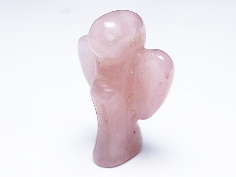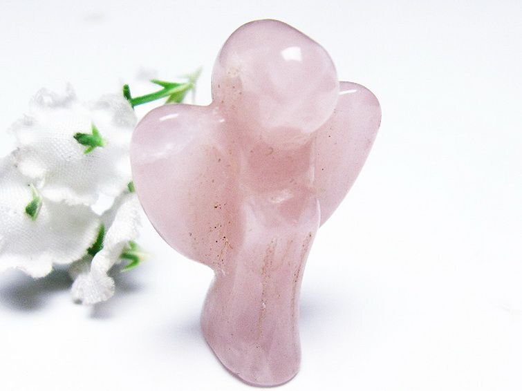 | ■商品名: ローズクォーツ天使置物 ■商品ID: T585-2410 ■商品重量:約 8.3g ■商品サイズ: 高約:31mm 横約:23mm 厚約:14mm 【ローズクォーツ(紅石英)】 ローズクォーツは柔らかい優しいピンクの水晶です。アルミニウムや酸化チタンなどの結晶を含むためにピンク色になると考えられています。これらの微細な結晶が分散しているため、石全体の透明度が低く、濁っていたりひびがあります。高品質の透き通ったものや、スター効果が確認できるものは珍重されています。 この石は愛や優しさ、内面美を象徴する石です。ローズクォーツと言うと「恋愛運アップ!」といったイメージが一般的ではないでしょうか。 ローズクォーツは持ち主の内面の美を高め、女性の幸せや喜び、愛を呼び起こしてくれるとされています。また過去の傷ついた経験から、ついネガティブ思考になったり自分に対してマイナス思考になったりするような、負の感情を優しさで包み込み癒し、自分を許し愛せるようになるそうです。 この石は目当ての異性を連れてくるというよりは、内面的に美しくなり自分を良い意味で大切にする自己愛を知ることにより他者から愛されるという効果のようです。例えば自分なんか大嫌い、自分なんかどうせ、と思っている時に、他人から愛されるでしょうか。それよりも自分を認めて受け入れ、愛していると内面が輝いて魅力が溢れます。その魅力により周囲の人から愛され、他人から愛されることにより一層他人を愛せるようになるという、愛を呼び込む循環を造ってくれるそうです。 そういった意味で、実は恋愛運アップというよりはもっと定義の広い愛情運アップの効果があるとされています。 こういった広い意味での愛を得ることができるとされ、人に対して思いやりを持ち許せるようになることから、人間関係の改善や、苦手だけれどどうしても付き合わなければならない人がいるといった場合でも活躍してくれることでしょう。 【水晶(石英、クリスタルクォーツ)】 水晶とは石英を指しますが、一般的に無色透明のものをクリアクォーツやロッククリスタルと呼んでいます。 水のように美しく透き通ったものが良いと思われがちですが、内部にヒビや他の鉱物などのインクルージョン(内包物)が入っているものがあり、それが天然物の証。また、インクルージョンによって様々な種類に分類され、それぞれ違った印象を与えてくれます。 古くから呪い事に使われてきた水晶に秘められたパワーはとても万能で、あらゆる場面に対応するといわれています。特に邪気を祓う力が強いため、人間関係を円滑にしたり、心身をクリアな状態にしたい場合に最適です。また空間を浄化する作用もあるとされ、インテリアとしても高い人気を誇っています。 石自体に強い自浄作用があり、他のパワーストーンが吸収した負のエネルギーを浄化するといわれています。更にアクセサリーとして他の石と組み合わせる場合、それぞれの石の個性を引き出しバランスを取ってくれる効果があるそうなので、ぜひとも組み込んでおきたいですね。 パワーストーン入門に最適な水晶ですが、愛好家にとってはかなり奥が深く最後に行き着くのもこの石なんだそうです。何もかもを見透かすような透明な水晶には、本当に神秘的なパワーが宿っているのかもしれません。 |