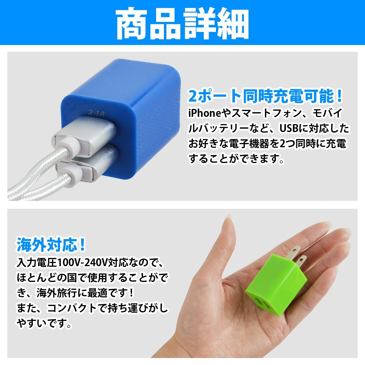 スマートフォン 充電器 ACアダプター USBポート 2口 2.1A レッド iphone スマホ 充電 USB2ポート コンセント コネクター