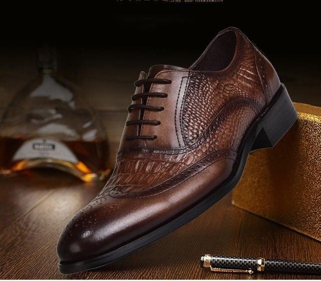 ビジネスシューズ メンズシューズ シューズ 靴 フォーマル ロングノーズ ローカット 紐靴 紳士靴 ワニ柄 おしゃれ ブラウン 25cm