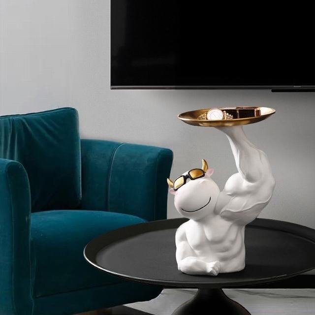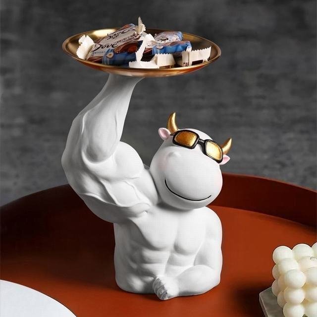 筋肉牛 トレイ 小物置き 置物 オブジェ 飾り ディスプレイ お菓子入れ 玄関鍵置き インテリア 新築お祝い ホワイト