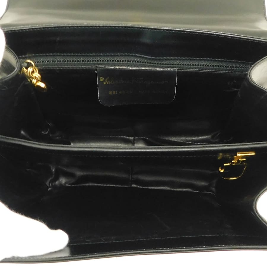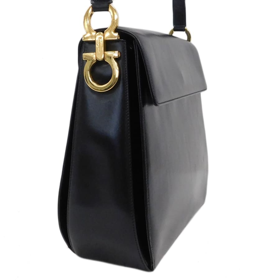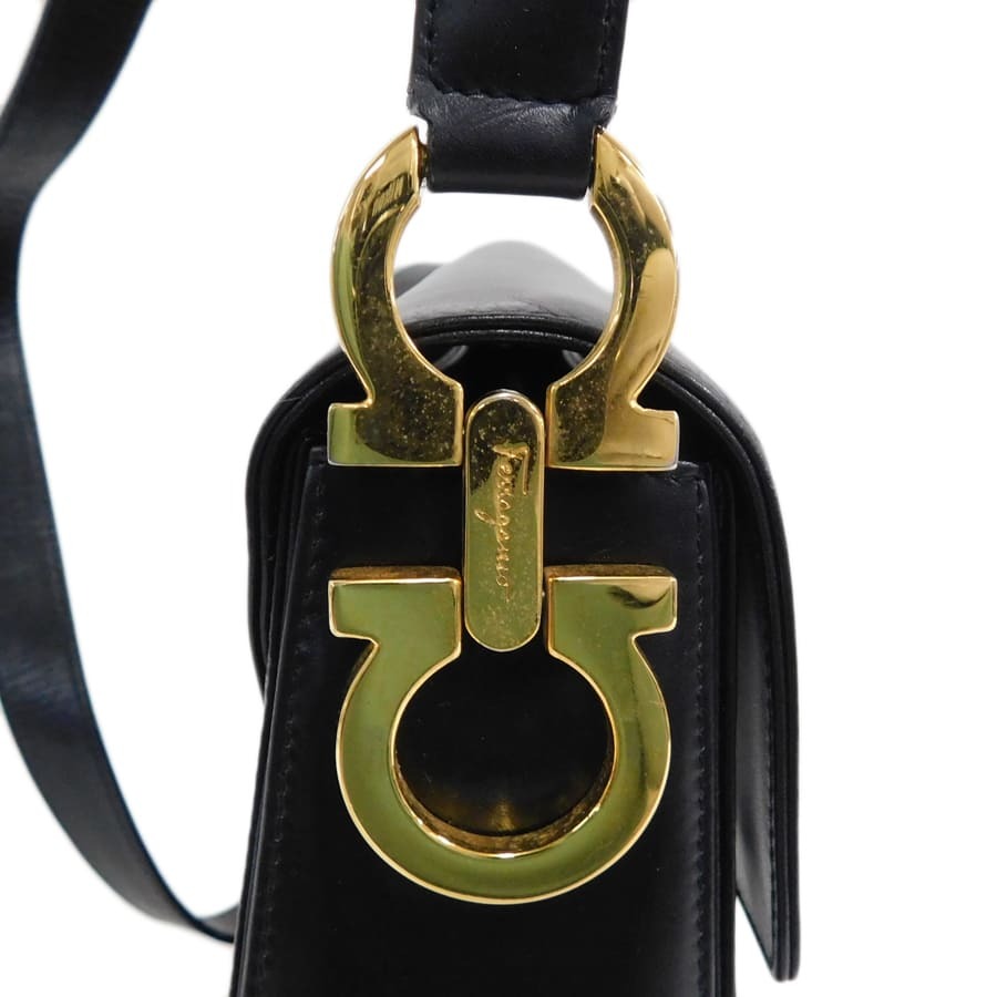 1円■サルヴァトーレフェラガモ/ショルダーバッグ/ブラック系/レザー/ガンチーニ/Salvatore Ferragamo ■E.Bug.tI-10[中古]