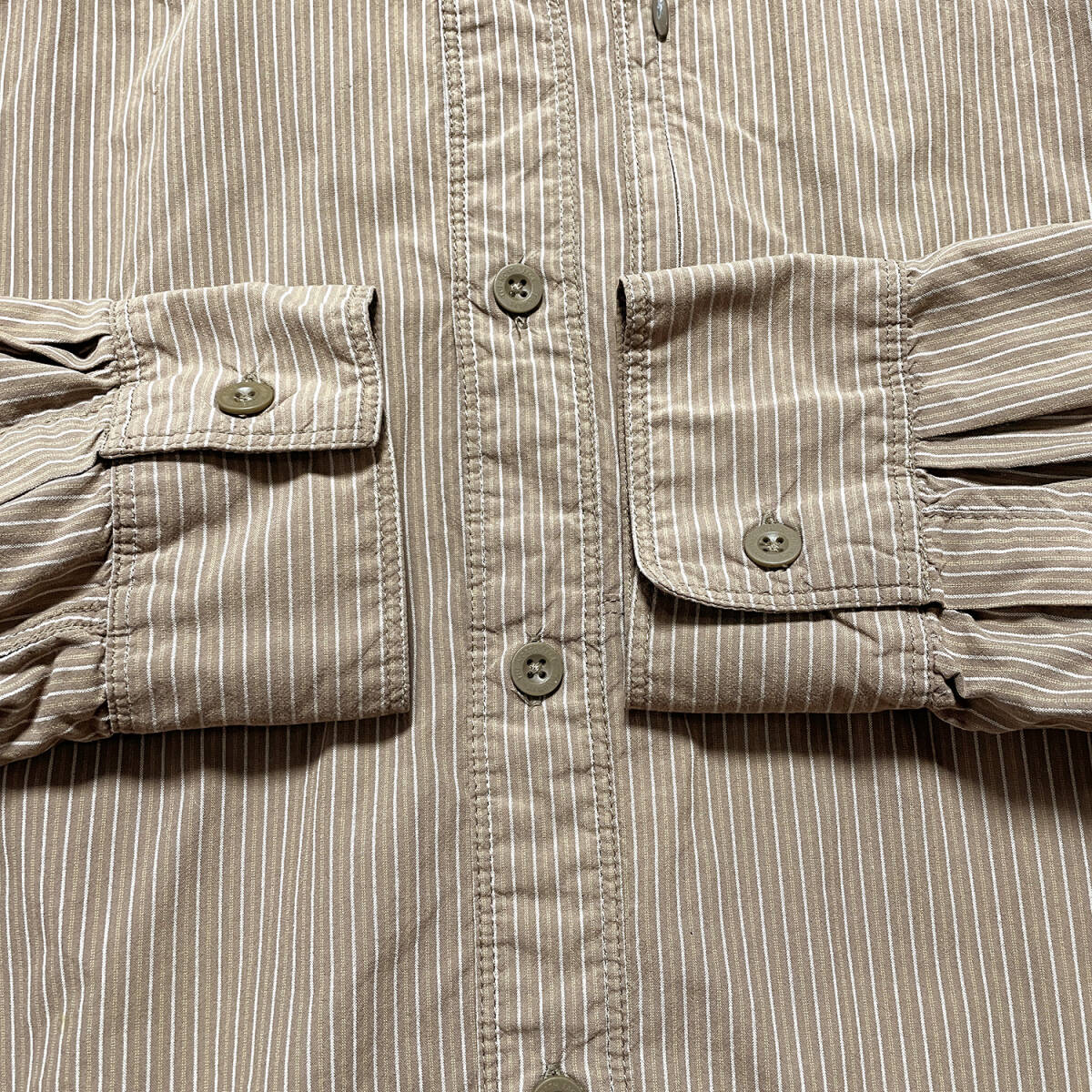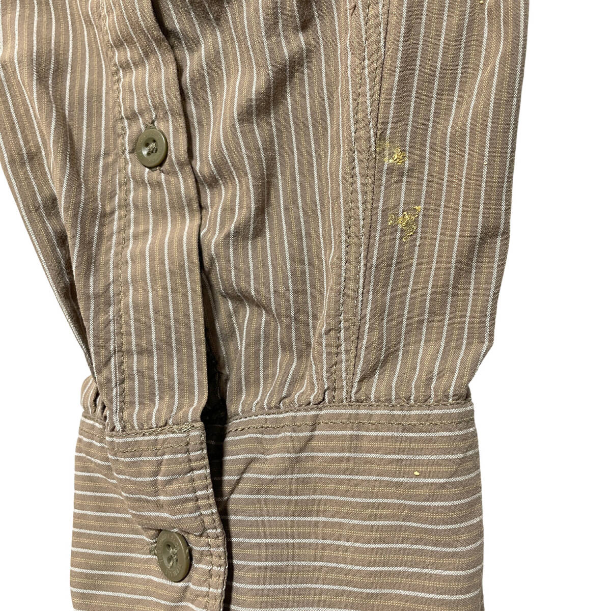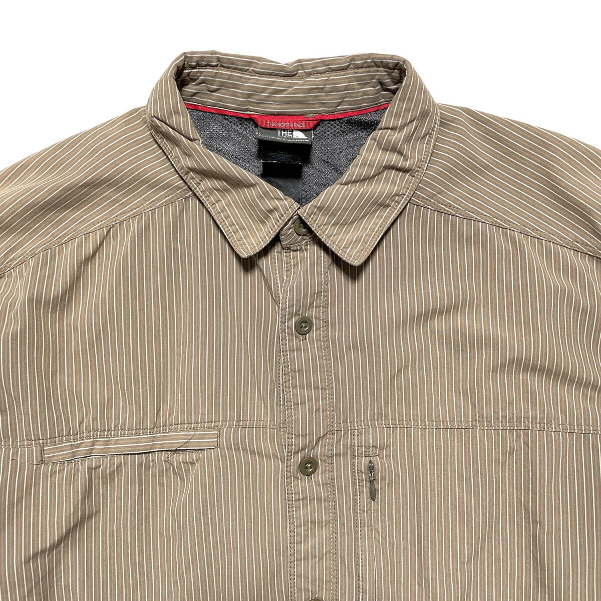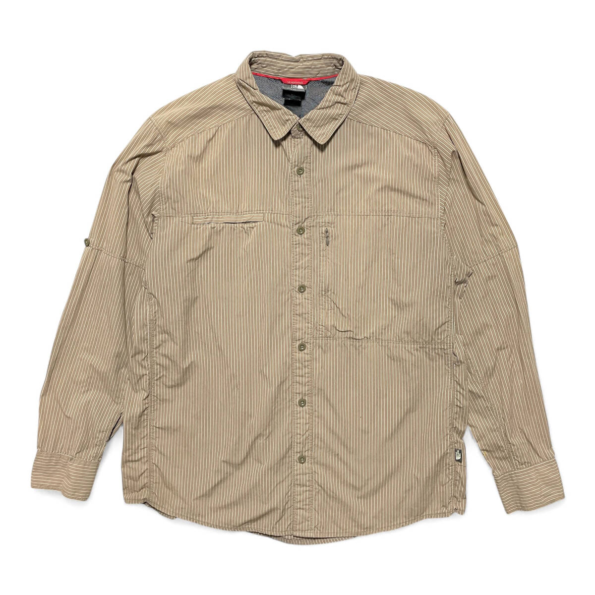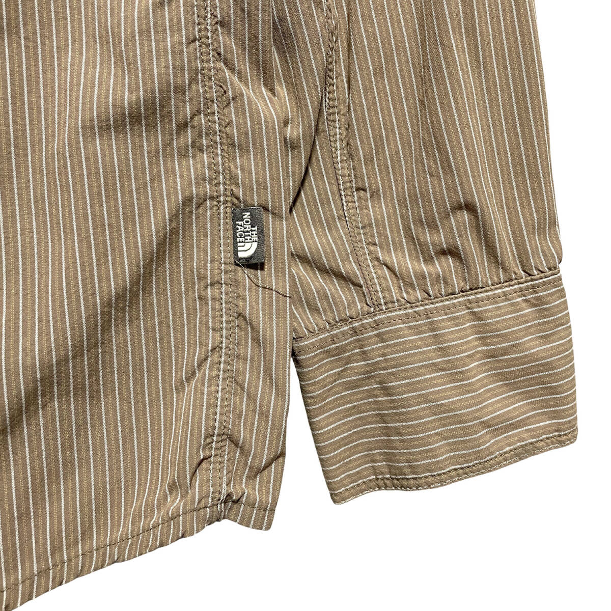 古着 USA THE NORTH FACE ノースフェイス アウトドア ナイロン ストライプ 長袖シャツ メンズL ブラウンベージュ系 BG1114