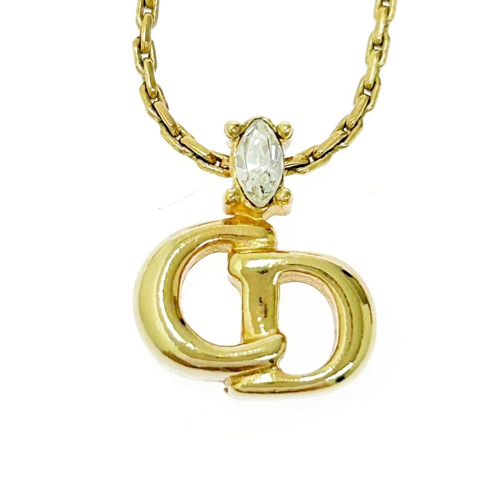【1円スタート】Christian Dior クリスチャンディオール GP ラインストーン CDロゴ ゴールド ネックレス 522031