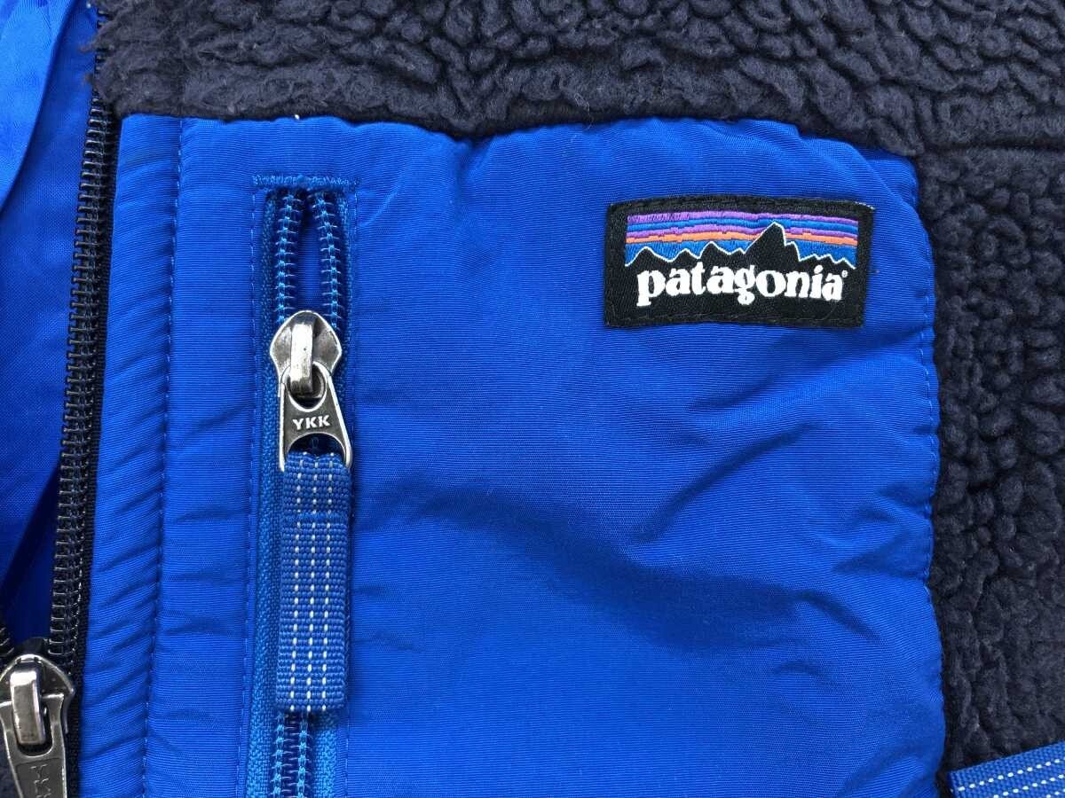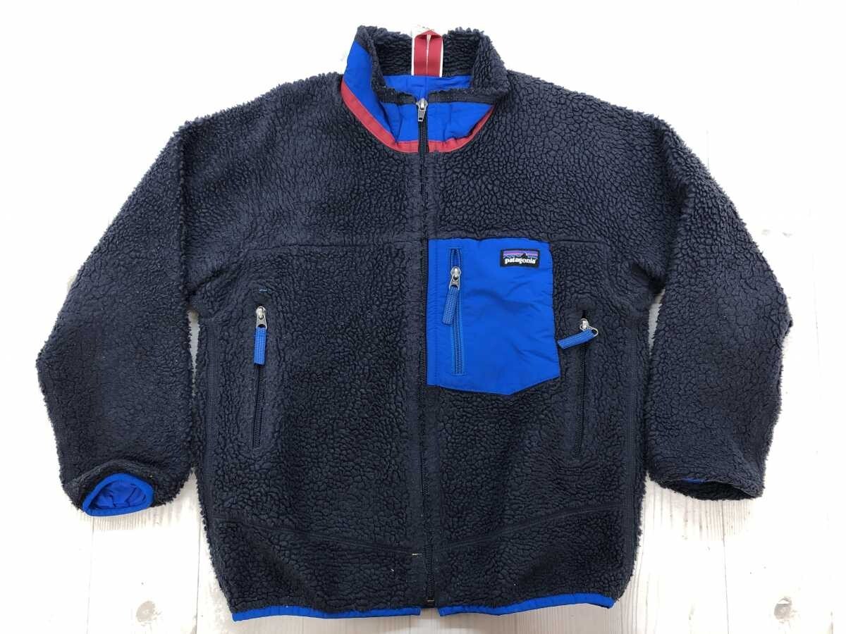 パタゴニア Patagonia アメカジ アウトドア 異素材切替 パイピング ボアフリース ジャケット キッズ 子供服 ポリエステル100% M 紺 です。