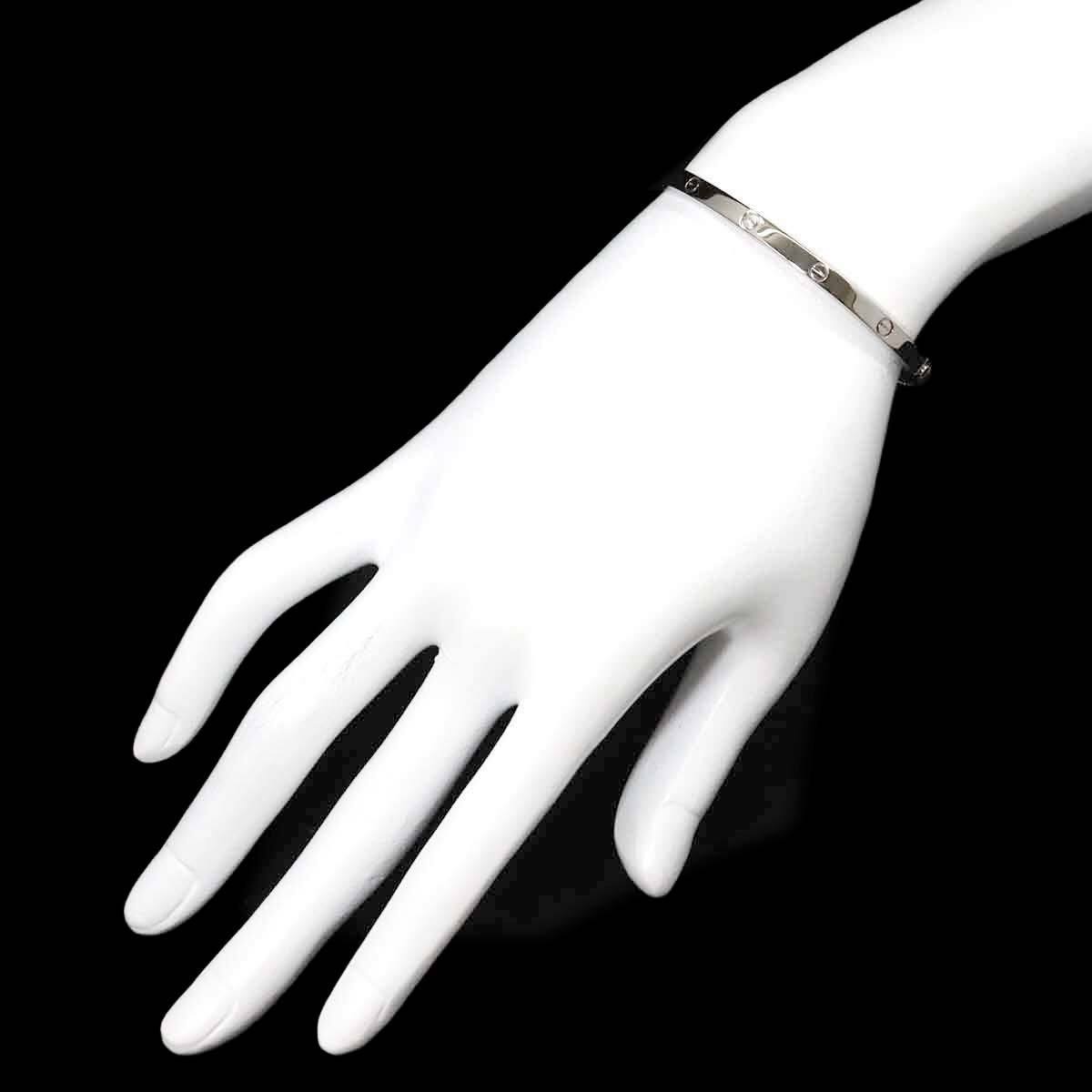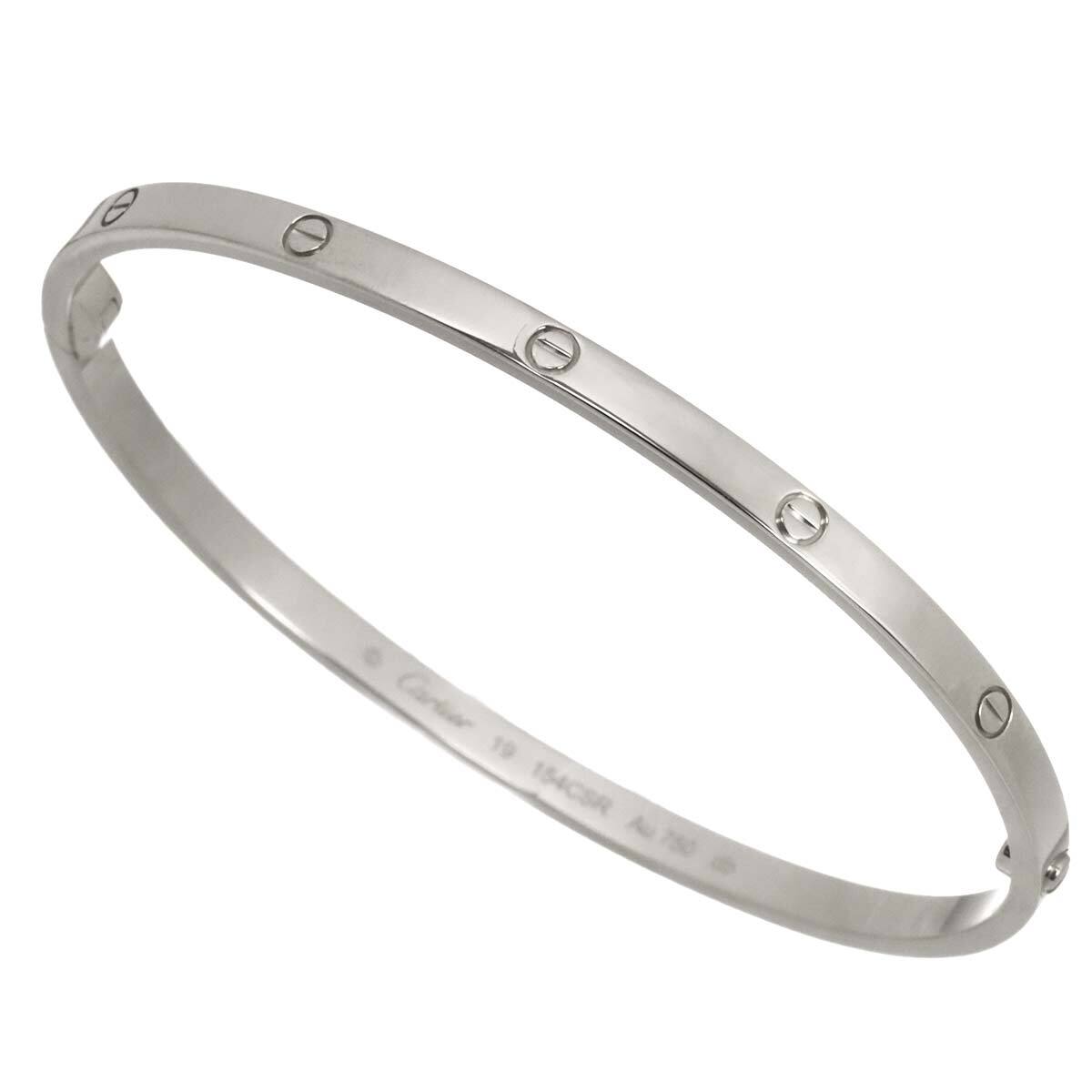 | 商品概要 | 上品な印象を与えるホワイトゴールドが輝くカルティエ「ラブブレスレット」。細身のバングルが女性らしさを際立たせ、ビスモチーフが手元を飾り永遠の愛と輝きを象徴。*取り外しの際はビスが縦になるように半回転させて開けるタイプで、ネジ式ではありません。ビスの回し過ぎを防止する為内側がフラットになったタイプです。 |