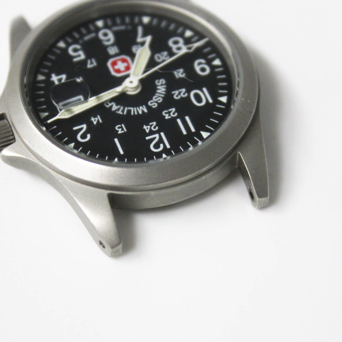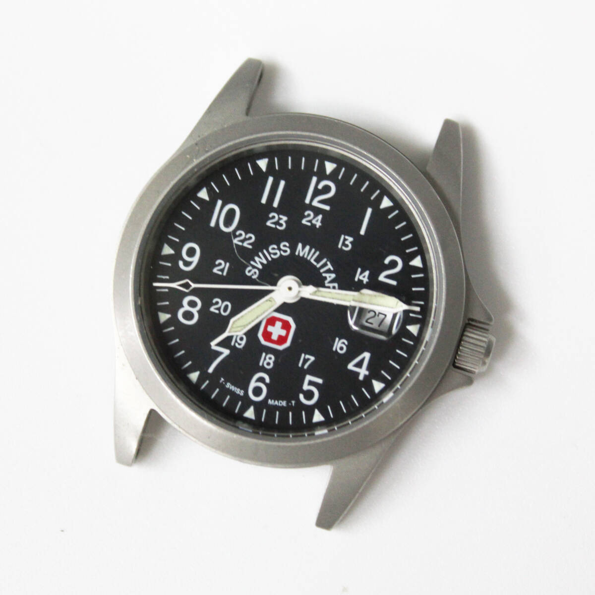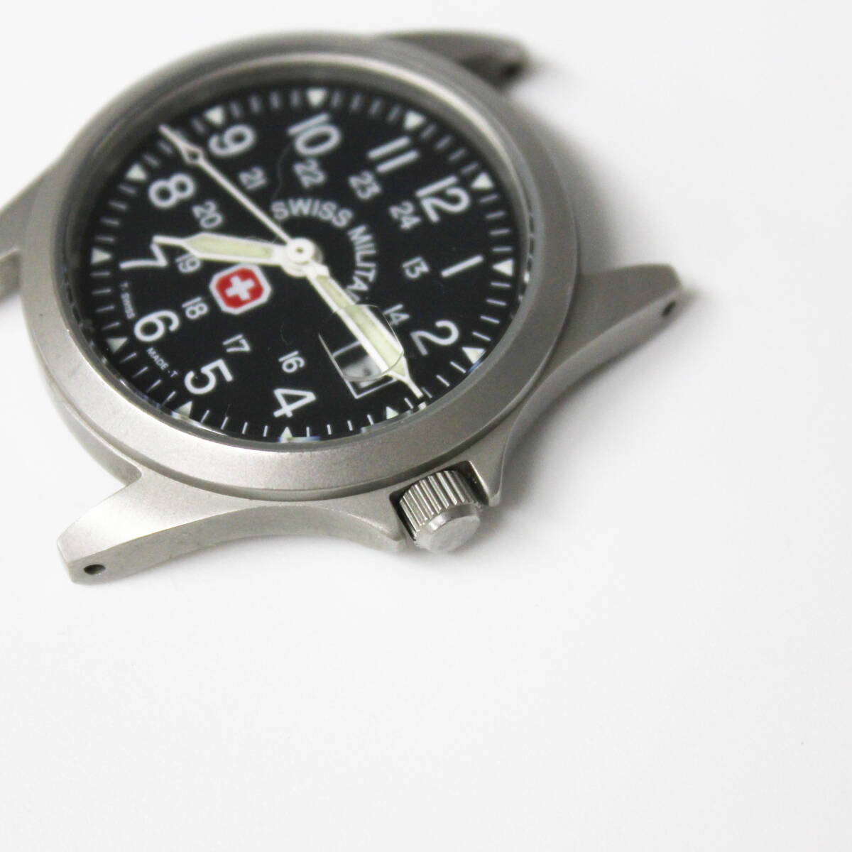 W251117-13 SWISS MILITARY スイスミリタリー 6-618 6-718 メンズ腕時計 クォーツ デイト ジャンク 文字盤ブラック