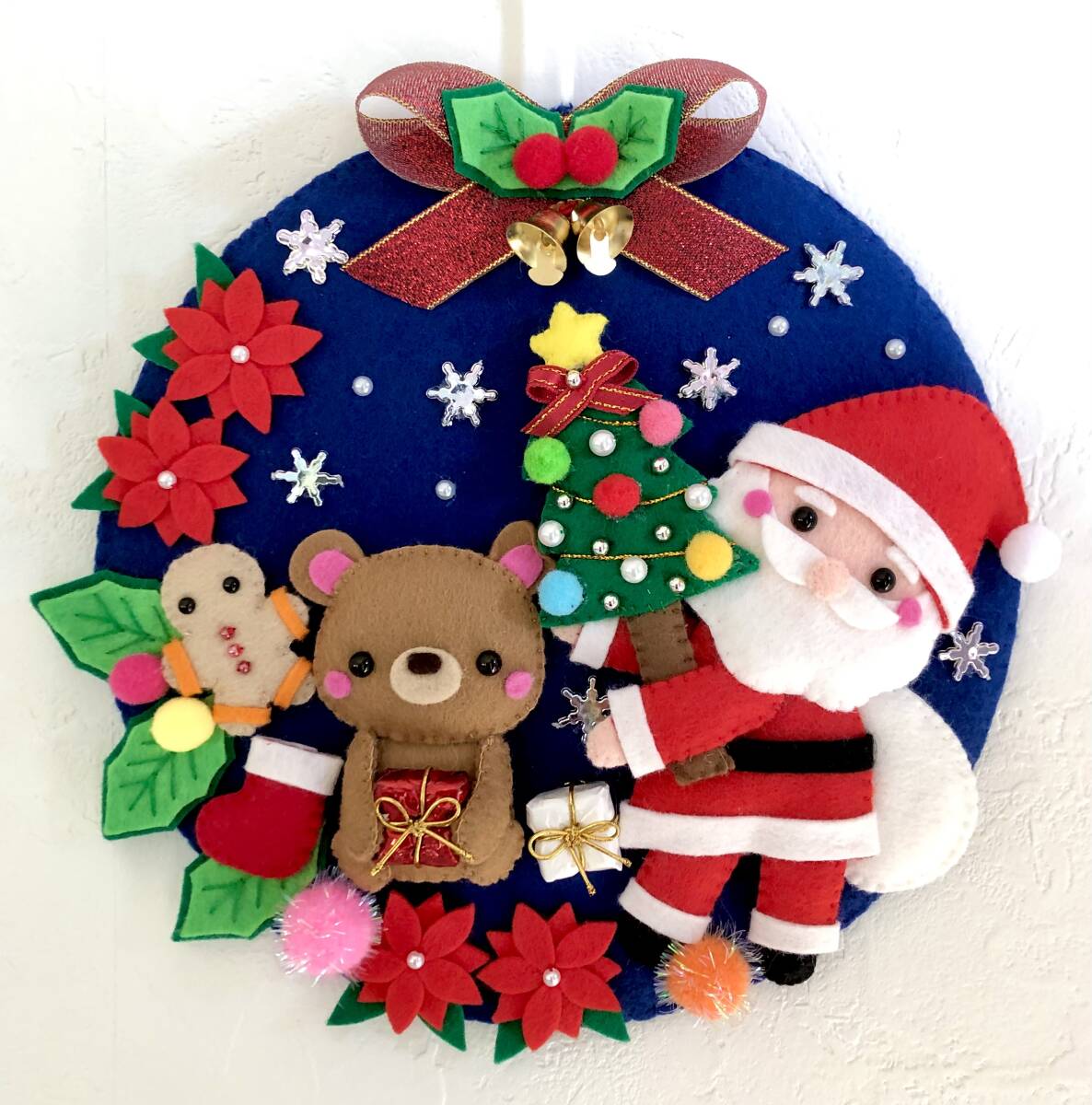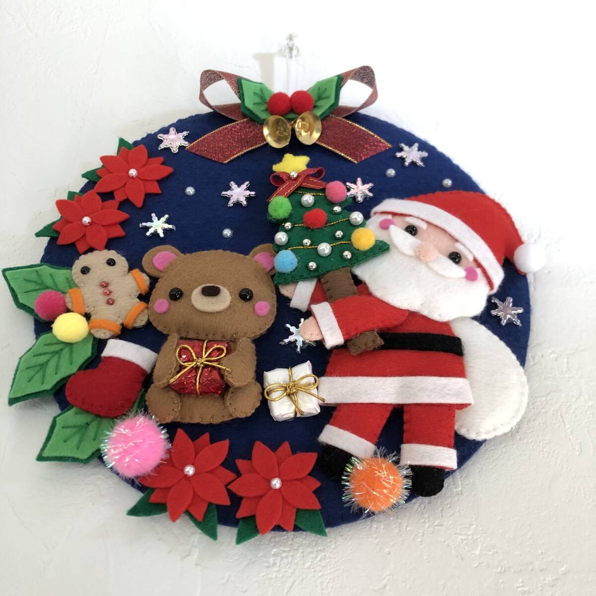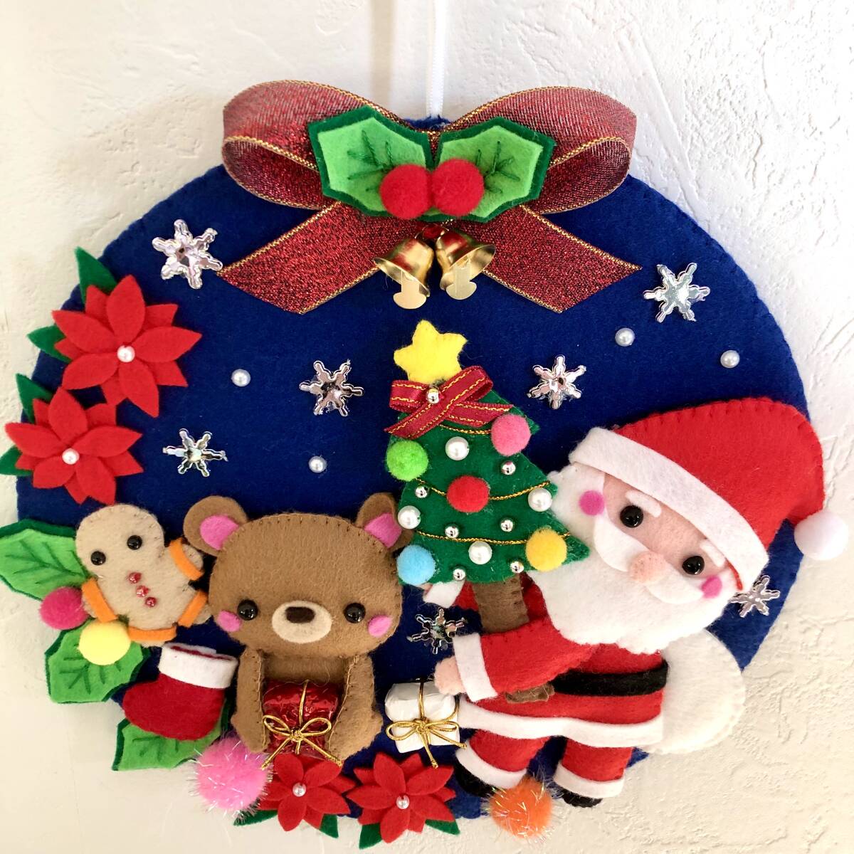 ハンドメイドのクリスマスをイメージしたリースを作りました。