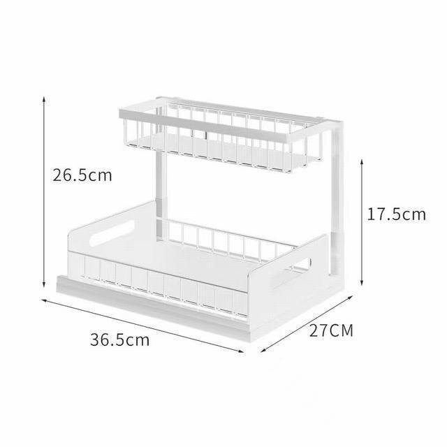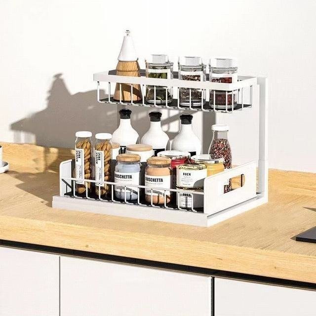 シンク下収納 2段 引き出し キッチン収納 スライド式 隙間収納 調味料入れ 収納ラック 組立簡単 省スペース ホワイト