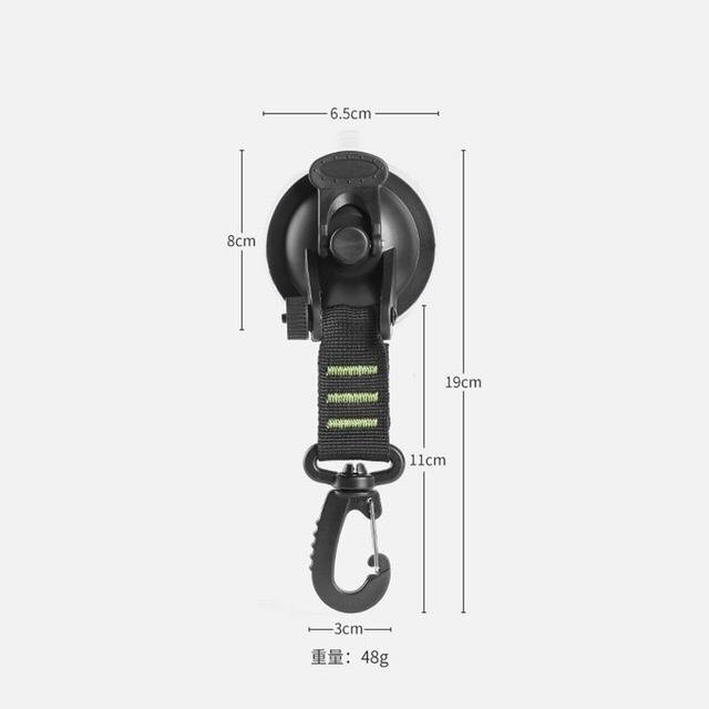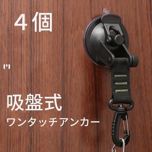 強力な吸盤付きのワンタッチアンカーです。 フックが付いているので、ロープなどを簡単に引っ掛けられます。 強過ぎてボディにダメージが出るゲルタイプの吸盤ではなく、一般的な軟質プラスティックの吸盤を採用していますので、女性の方でも気軽にご使用頂けます。