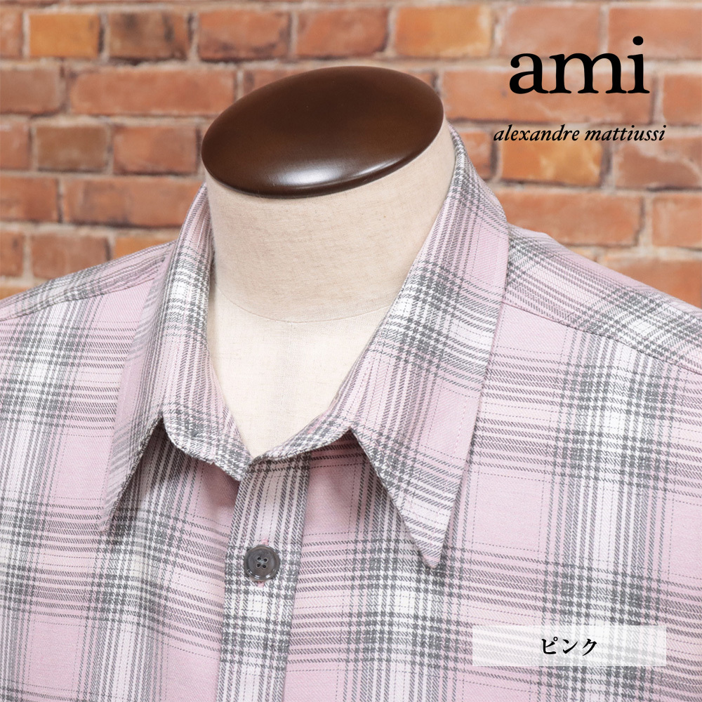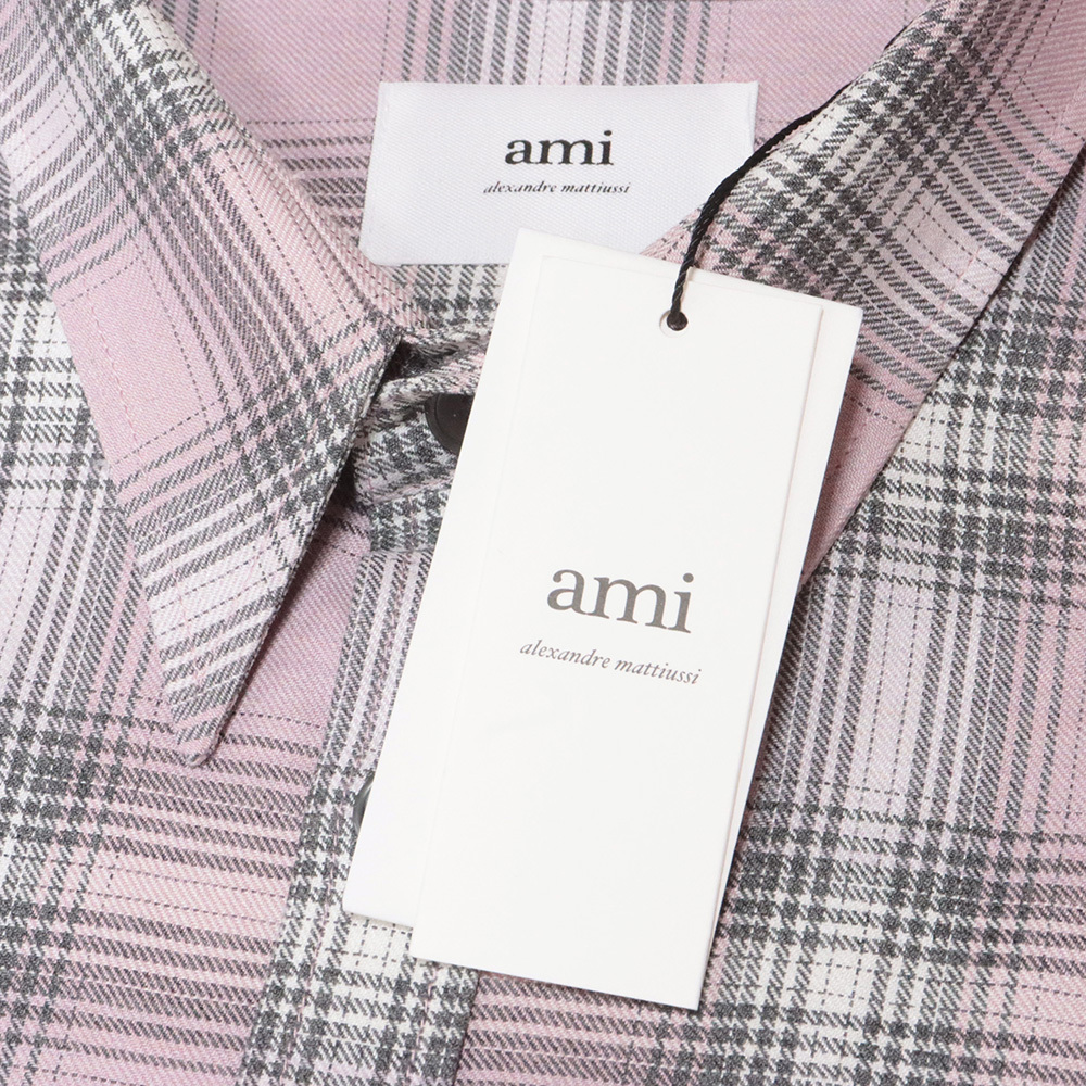 24秋冬/AMI PARIS/Mサイズ/チェック柄シャツ HJK228 VI0010 上質ウール混 オーバーシルエット 長袖 アミ パリス 新品/ピンク/mb117/