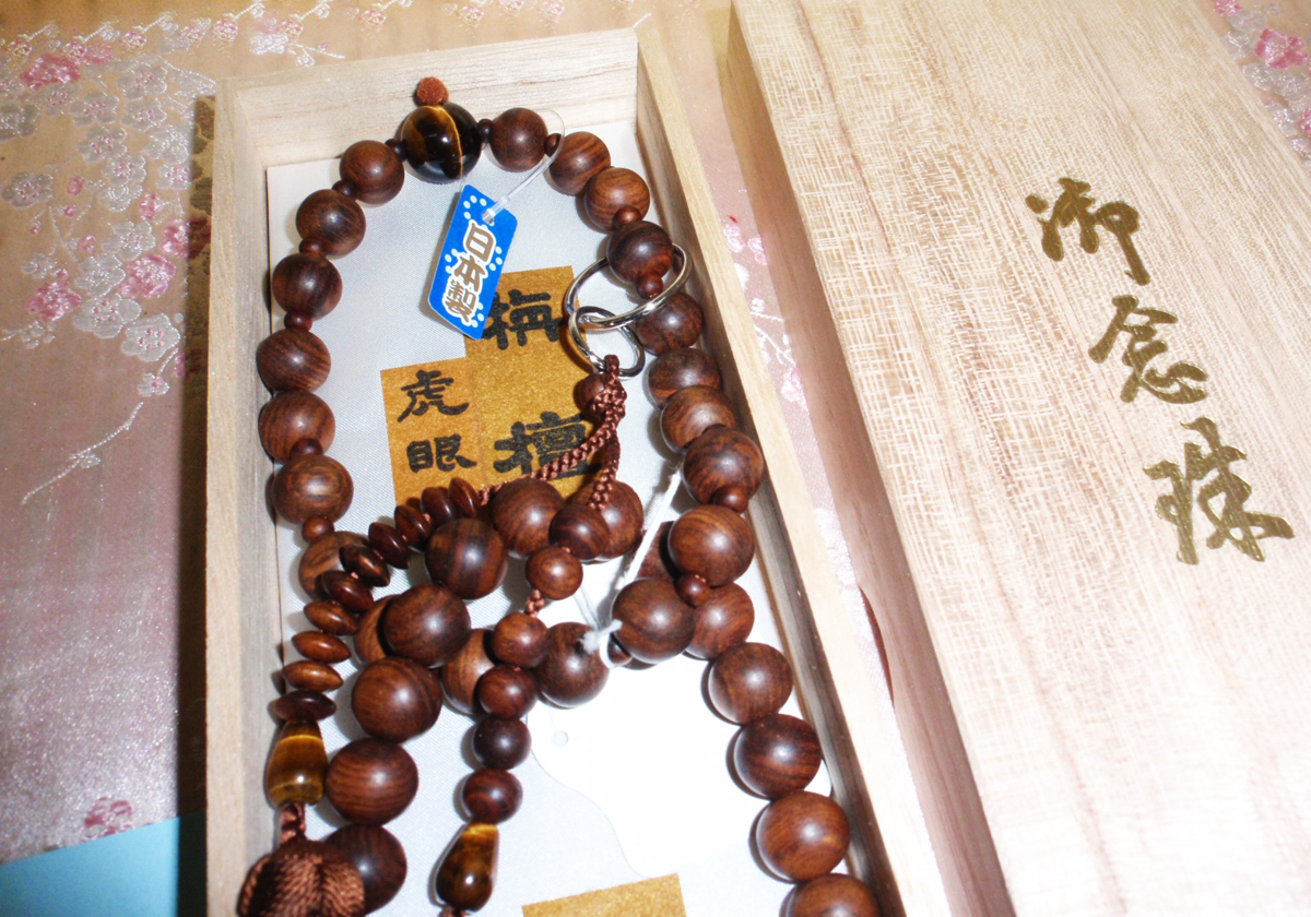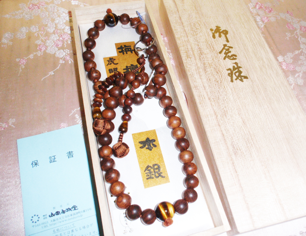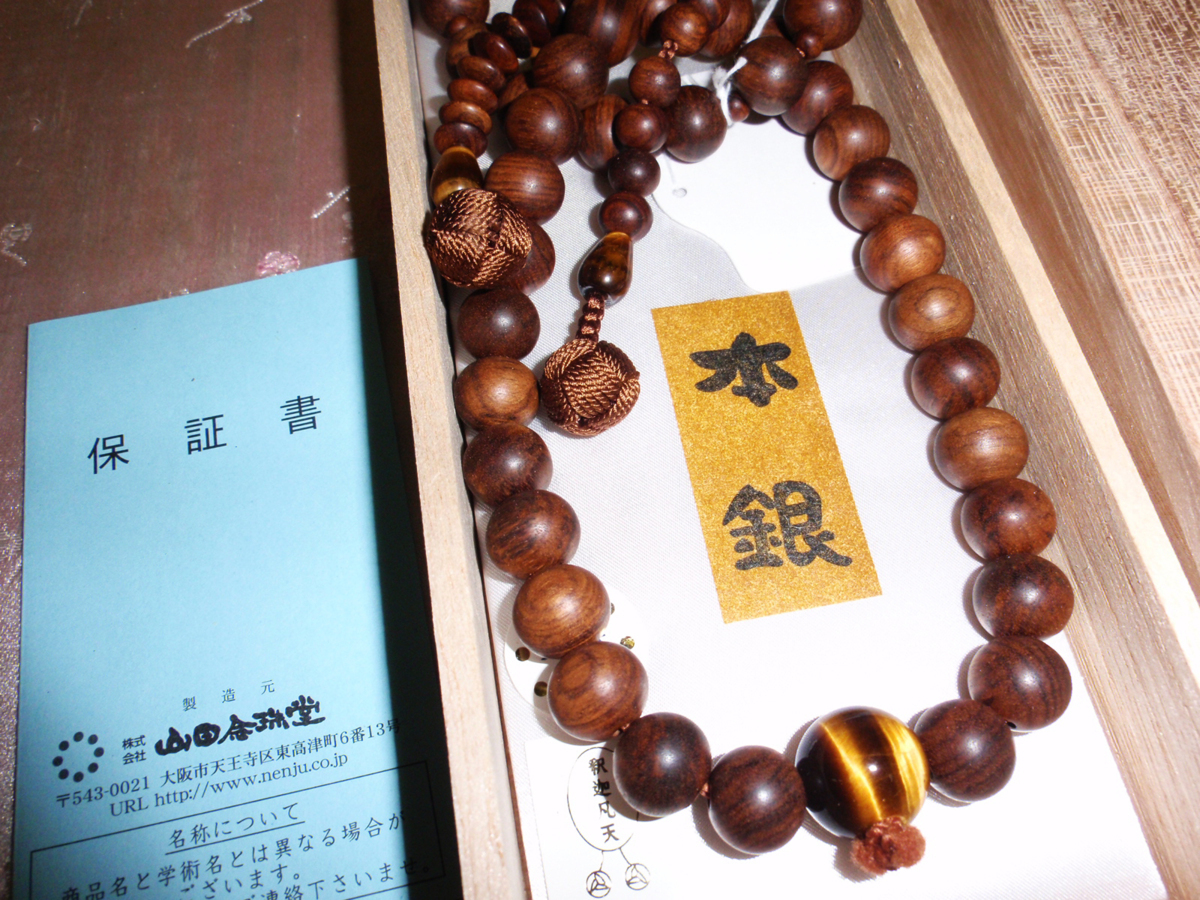 ◇25◇ 三万浄土☆栴檀 虎眼仕立+本銀輪 数珠 釈迦凡天 国産品 桐箱入り 浄土宗 時宗用 念珠 新品未使用【信頼のヤフオク!実績25年】