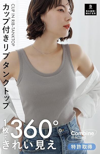 [バンビウォーター] ブラトップ タンクトップ カップ付き 【特許取得】 レディース リブ 盛れる 綿 トップス
