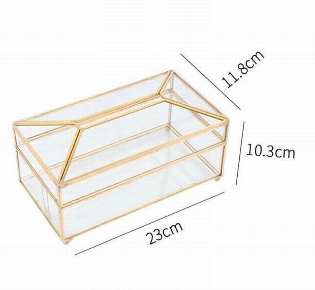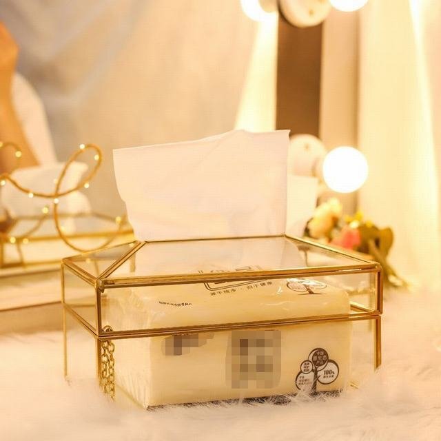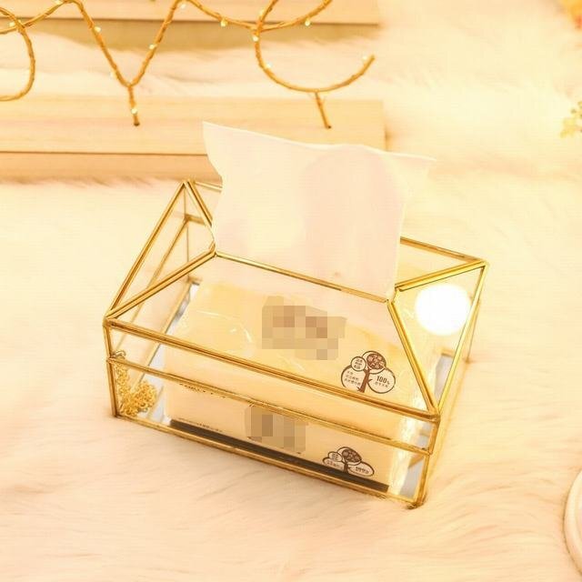 ガラス素材とゴールドの組み合わせがとっても素敵で高品質なティッシュケースです。 見せるインテリアとして、これを置くだけでお部屋がモダンで洗練された空間に生まれ変わります。 クリアで中身も見えるので、アクセサリーやメイク用品などのケースとしてもお使いいただけます。 ネイルサロンや、エステサロンに置くのもぴったりです。 防錆処理を施すことによって耐光性?耐食性を向上させ、十分な強度も持ち、 耐久性に優れています。 これを置いていると毎日の気分が上がります。