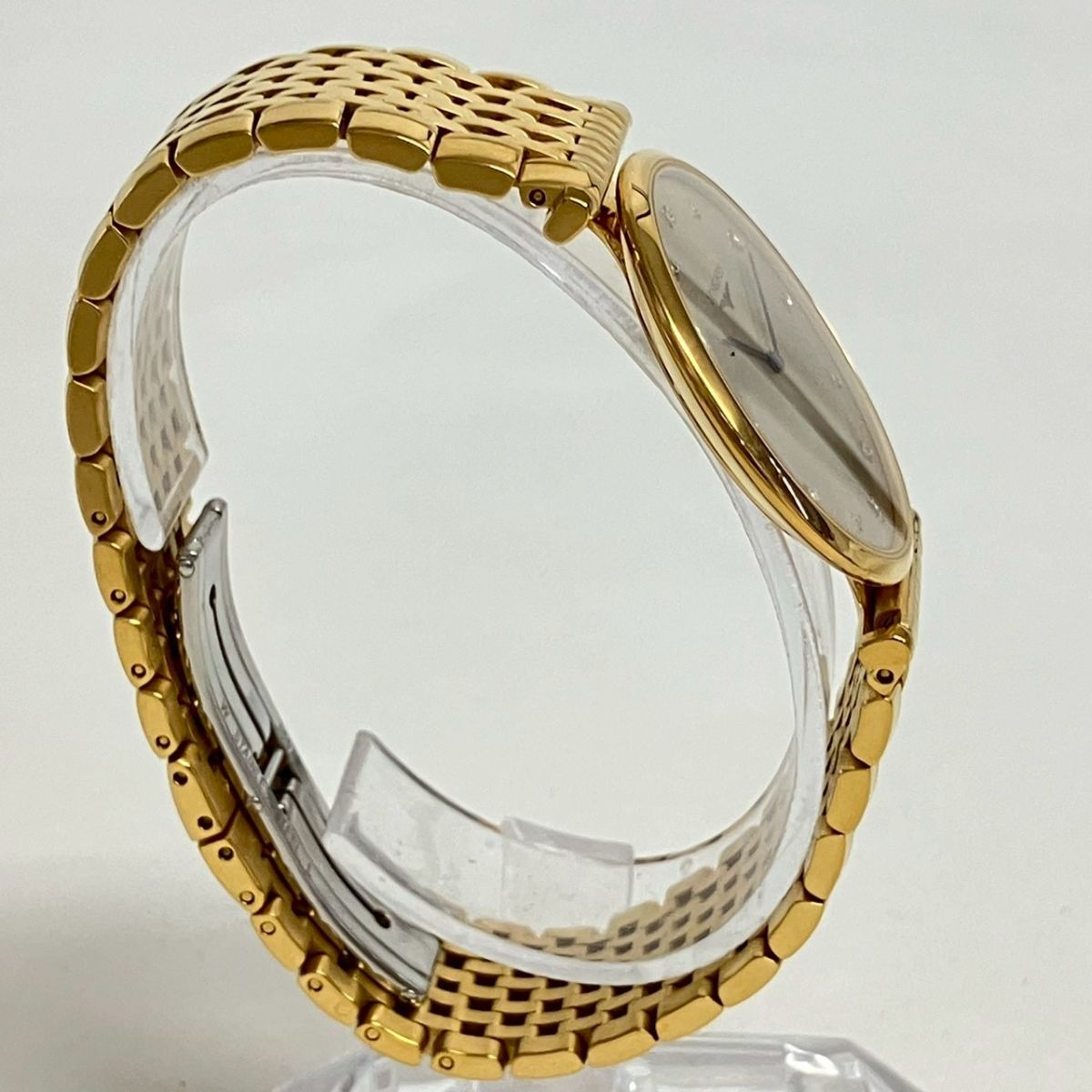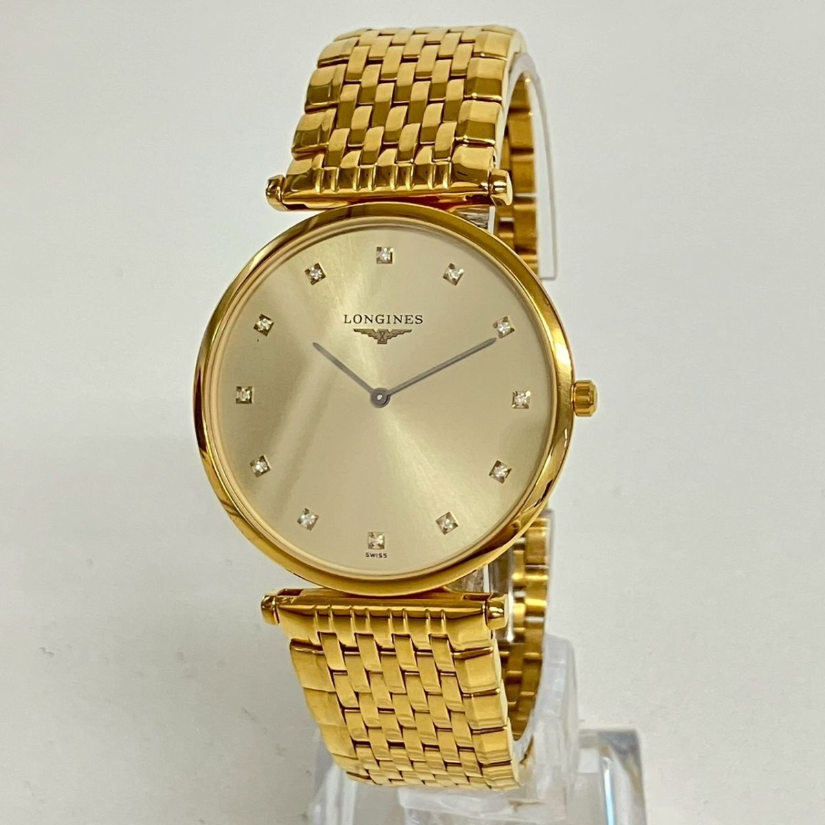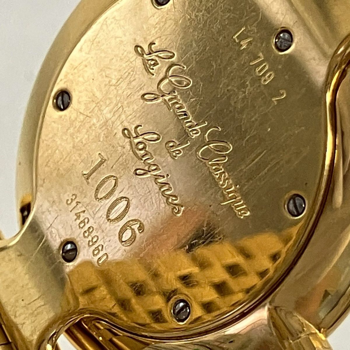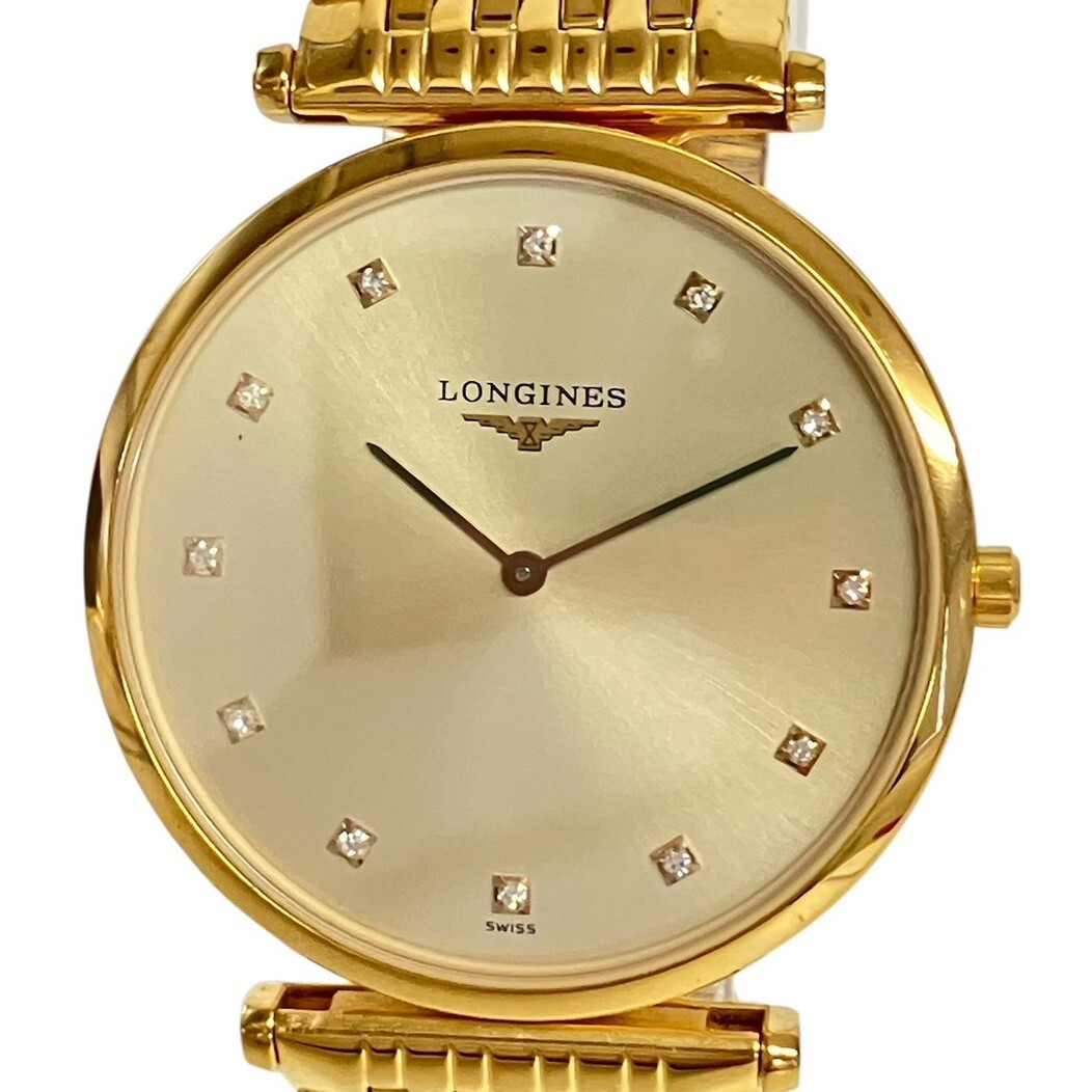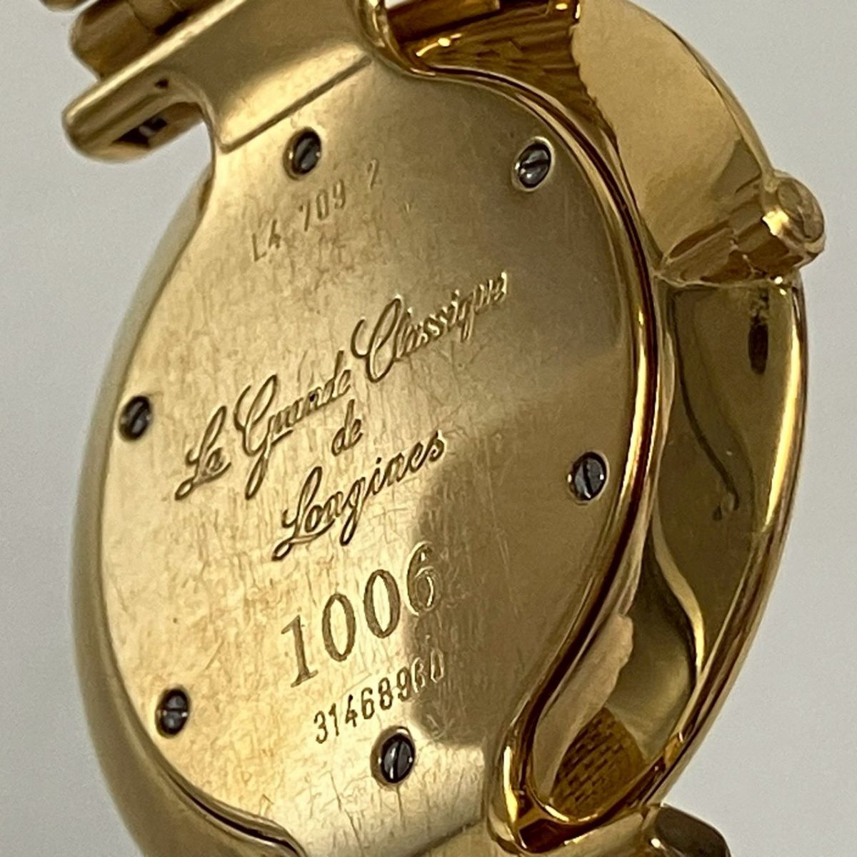 取り扱っている商品は未使用・未開封も含め、全て一度は人の手に渡った一点ものの中古・ジャンク扱いでの商品です。 当方素人ですので肉眼で確認できる簡易的な検品、採寸、および簡易梱包となります。 ※稼働の記載につきましては秒針等の確認のみとなり、全体の動作を保証するものではございません。 また、出品時の中古品の動作状況となりますので、予めご了承の上でご入札ください。 不動の表記につきましてはクォーツ式のムーブメントの場合、動作未確認の状態となります。 電池交換後、不具合があった場合でも返金、返品の対象とはなりませんので、予めご了承くださいますようお願い致します。 細かな日差、オーバーホール状況、社外パーツの使用に関しては保証しかねますので、ご理解いただけた上でのご入札をお願い致します。 上記を踏まえた上で中古品、ジャンク商品として出品させていただいておりますので、全てご理解いただけた上でのご入札をお願いいたします ------------------------------------------------------------------------- 【メーカー】 LONGINES 【モデル名】 Grand Classique 【型番】 L4 709 2 【シリアル】 31468960 【サイズ】 直径約3.3cm 腕回り約17.3cm 【付属品】 画像参照 【稼働状態】 稼働 【その他状態】 リューズ動作 時間:OK 日付:- 曜日:- ------------------------------------------------------------------------- 画像にあるものが全てです。 他詳細は画像にてご判断ください。 ※目立つ傷や汚れを中心に写真を撮っておりますが、画像に写りきっていない傷等がある場合もございます。予めご了承ください。 ※商品を多数出品している関係で、稀に商品説明や画像に誤りがある場合がございます。予めご了承ください。 こちらのページをご覧いただく際は、商品説明文と掲載している画像の全てを確認いただいた上でご入札ください。 | |||||||