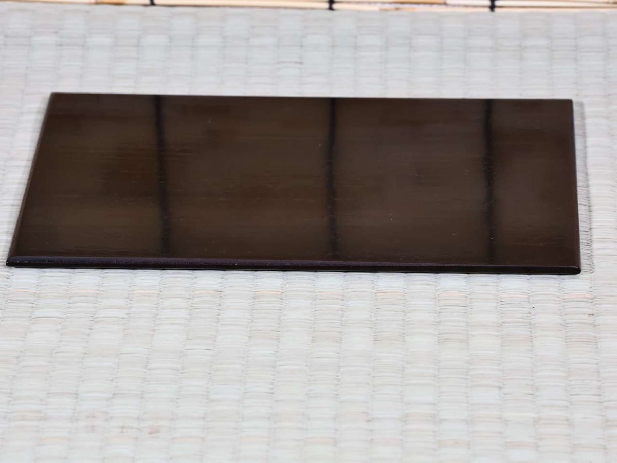 ①和敬板 溜塗り 縦・・・約21.4cm 横・・・約14.2cm 厚さ・・・約3mm 重量・・・約44g ②器据 溜塗り (一枚のサイズ) 縦・・・約21.2cm 横・・・約14.1cm 厚さ・・・約3mm 重量・・・約167g ◎素材は桐だと思います。 ※寸法は特に記述の無い限り最大幅・最長を示します。 素人の採寸ですので若干の誤差が生じる場合がございます。 状態・その他: 未使用の長期保管品、裏千家を習っていた方からの引き取り品です。 特にダメージもなく状態はきれいです、箱や内側の包み紙にシワ・シミヨゴレ・変色・色移りがあります。 見落としがあった場合はご容赦ください。 中身確認・撮影をしております。 完璧を求める方、細かいことを気になさる方は入札をお控えください。 ※専門知識がないため、細かな質問等にはお答えができません。 商品の撮影には忠実に反映されるよう心掛けておりますが、光の当たり具合やご覧のモニターにより色や質感が異なって見えることがあります。 中古(used)又は長期在庫品をご理解頂き、写真にてご判断の上ノークレームノーリターンでのお取引をお願いいたします。 ※お願い 取引終了までは『取引メッセージ』のチェックをお願いいたします。 | ||||||||||||||||