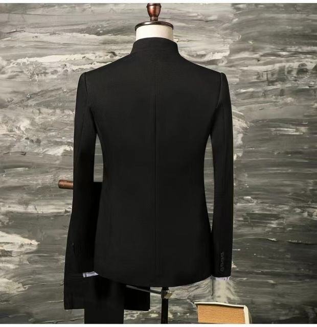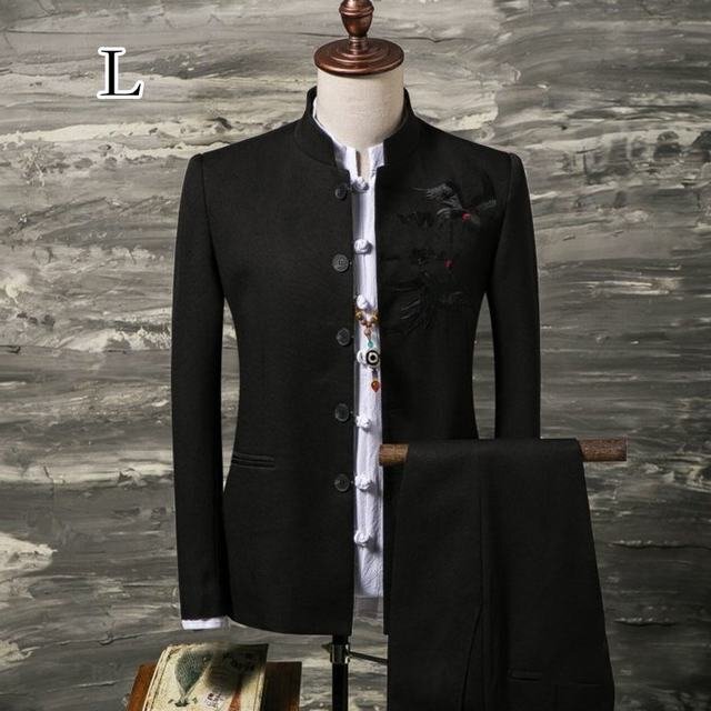 チャイナ風スーツ ビジネススーツ メンズ 上下セット 通勤 2ピーススーツ 披露宴 忘年会 細身 40代 50代 60代