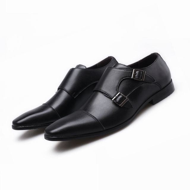 ビジネスシューズ メンズシューズ モンクストラップ  フォーマル PU革 革靴 就活 ロングノーズ 紳士靴  ブラック 27cm
