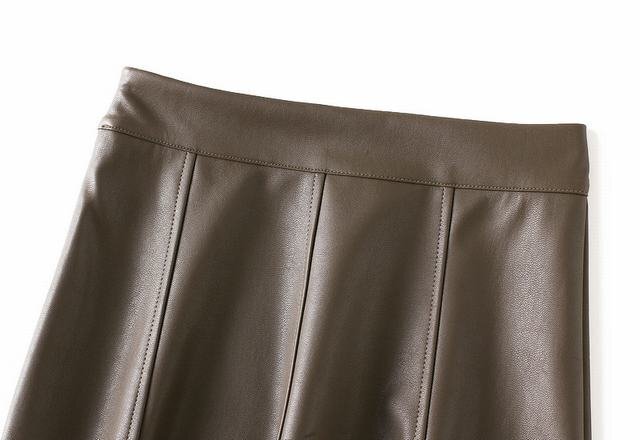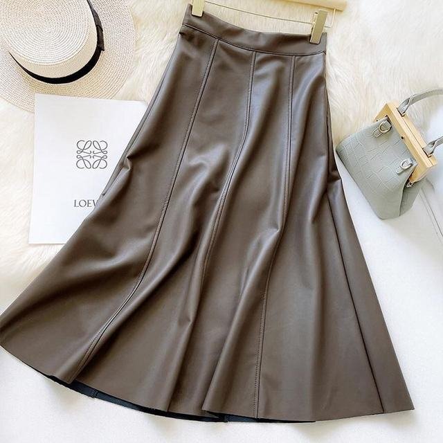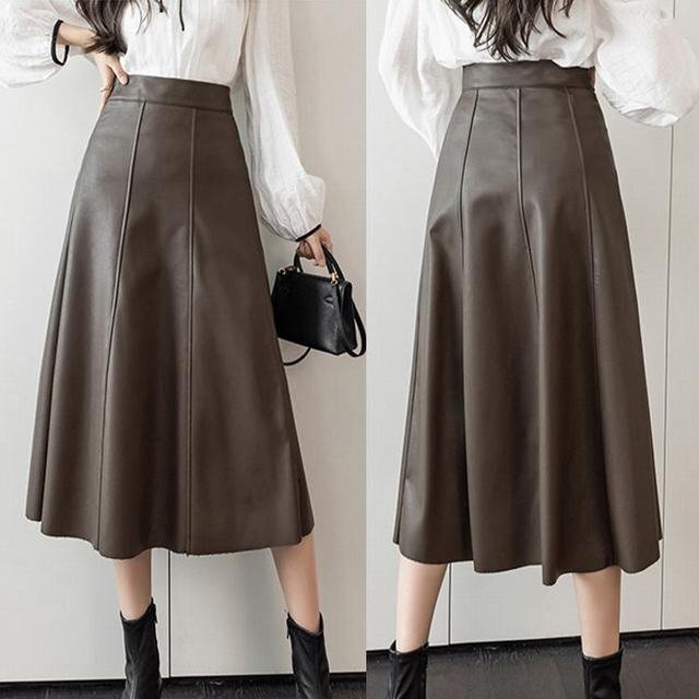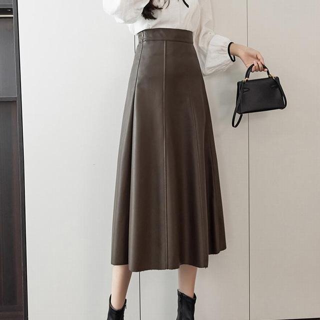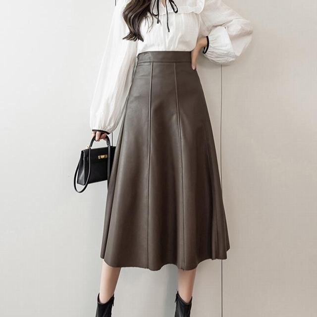スカート レディース PUレザー エコレザー ボトムス ロング丈 ミモレ丈 Aライン 暖か 通勤 春秋冬 韓国風 ブラウン M