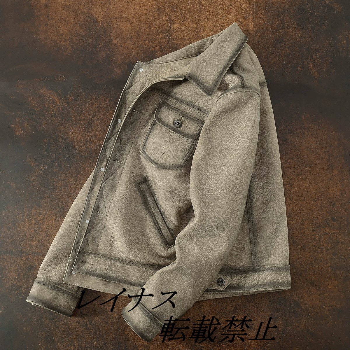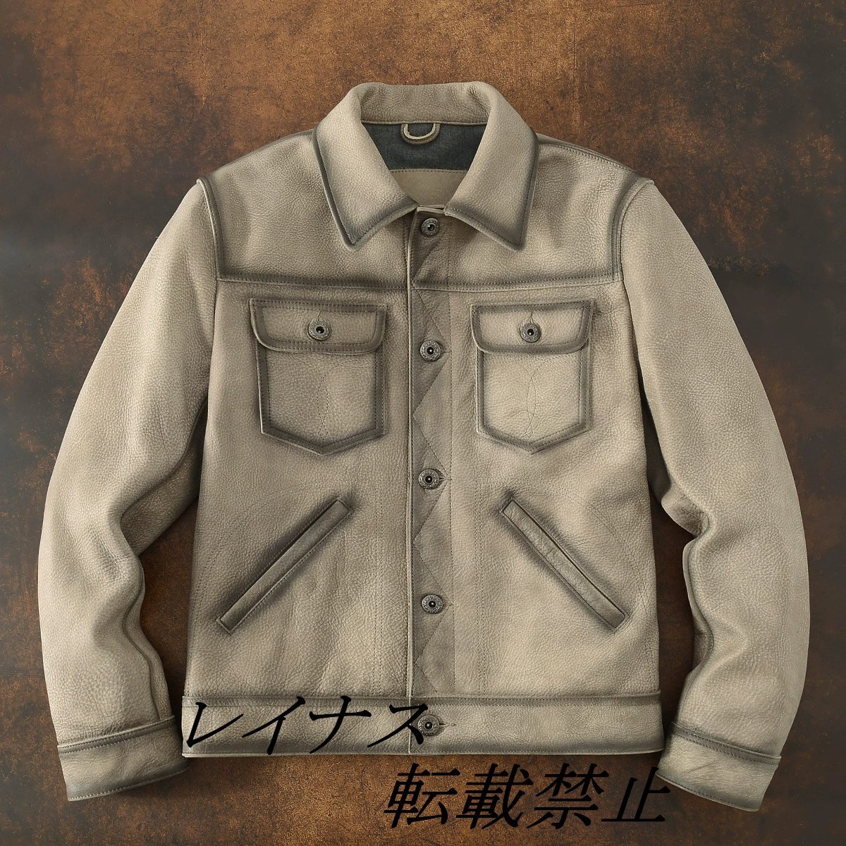 ■商品説明 : メンズ アメリカン ヴィンテージ レザージャケット ラペル ワッシャー加工 アンティーク加工 無塗装 牛革 スエード