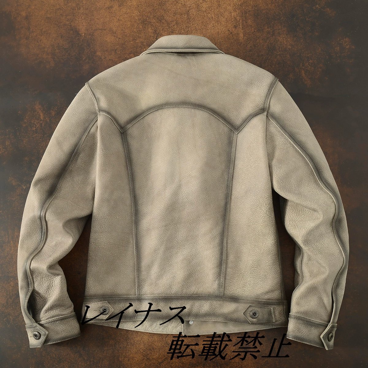 メンズ アメリカン ヴィンテージ レザージャケット ラペル ワッシャー加工 アンティーク加工 無塗装 牛革 スエード