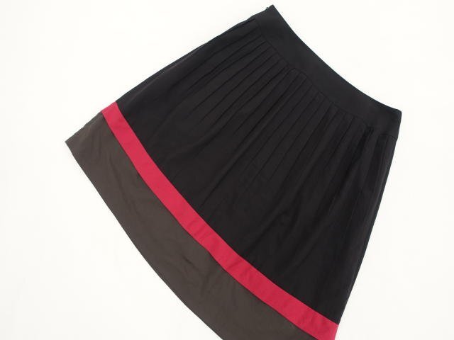 ひざ丈 プリーツスカート 44 ブラック&ピンク&グレー