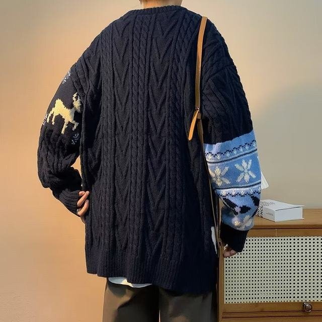 メンズニット セーター メンズ 編みニット 長袖 男性 秋冬 防寒 ゆったり トップス ネイビー XL