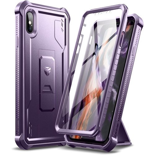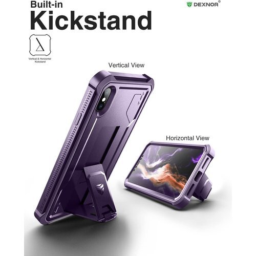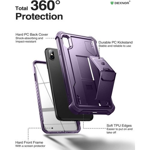 Dexnor iPhone XS MAX用 ケース 360度全面防護 軍用耐落下テスト済み 耐衝撃頑丈ケース 内蔵スクリーンプロテクター&キックスタンド付き(パープル)