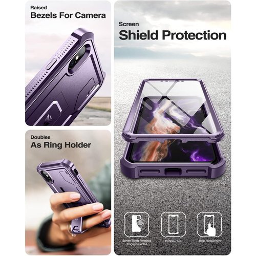 Dexnor iPhone XS MAX用 ケース 360度全面防護 軍用耐落下テスト済み 耐衝撃頑丈ケース 内蔵スクリーンプロテクター&キックスタンド付き パープル 479