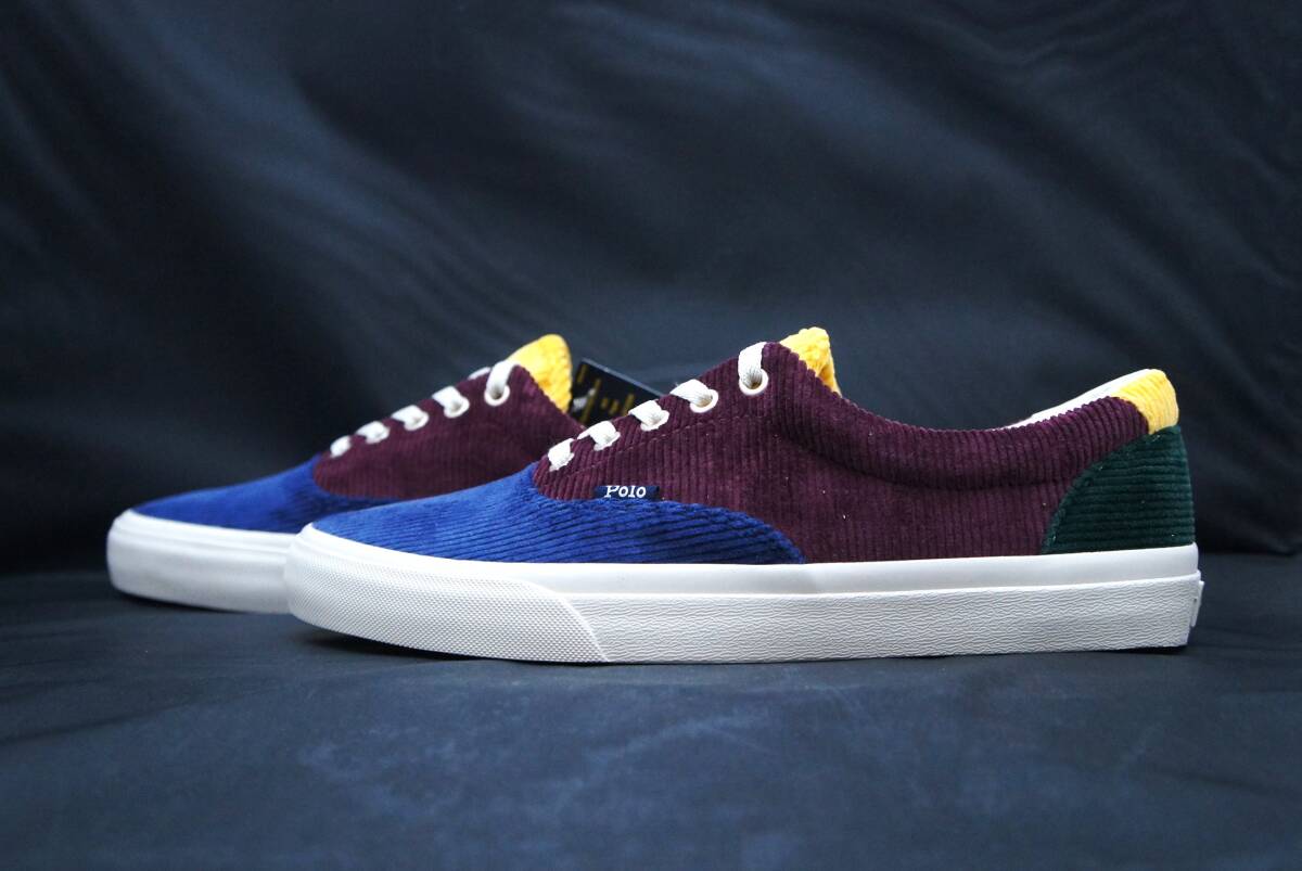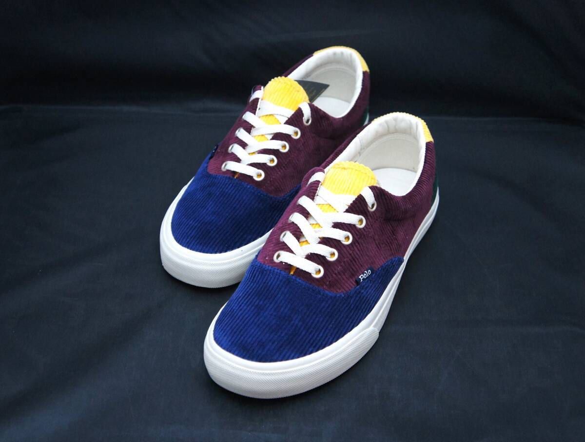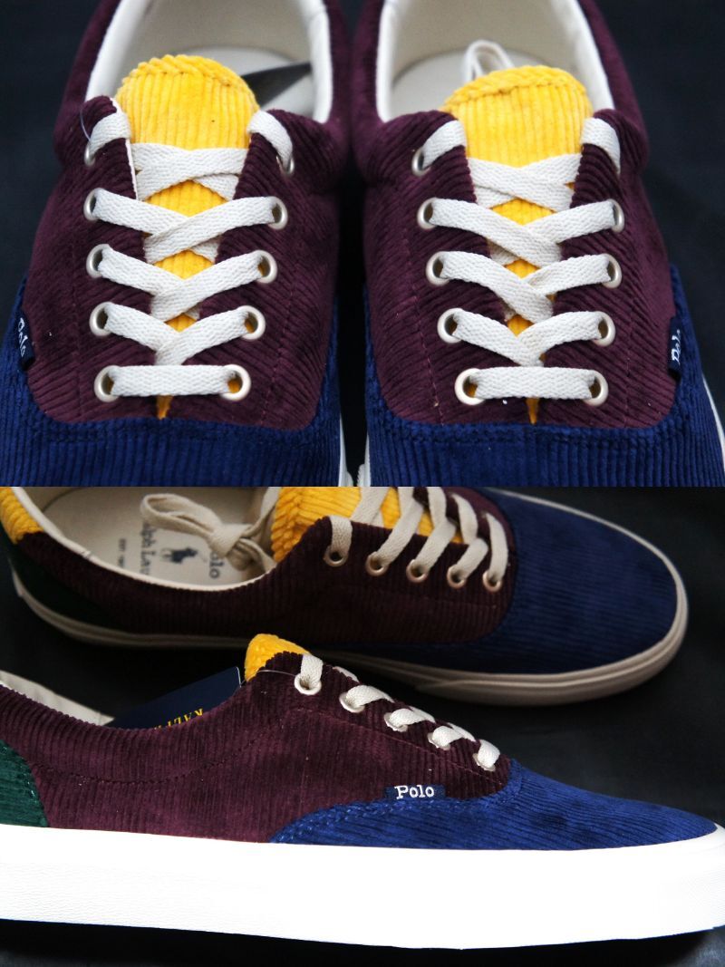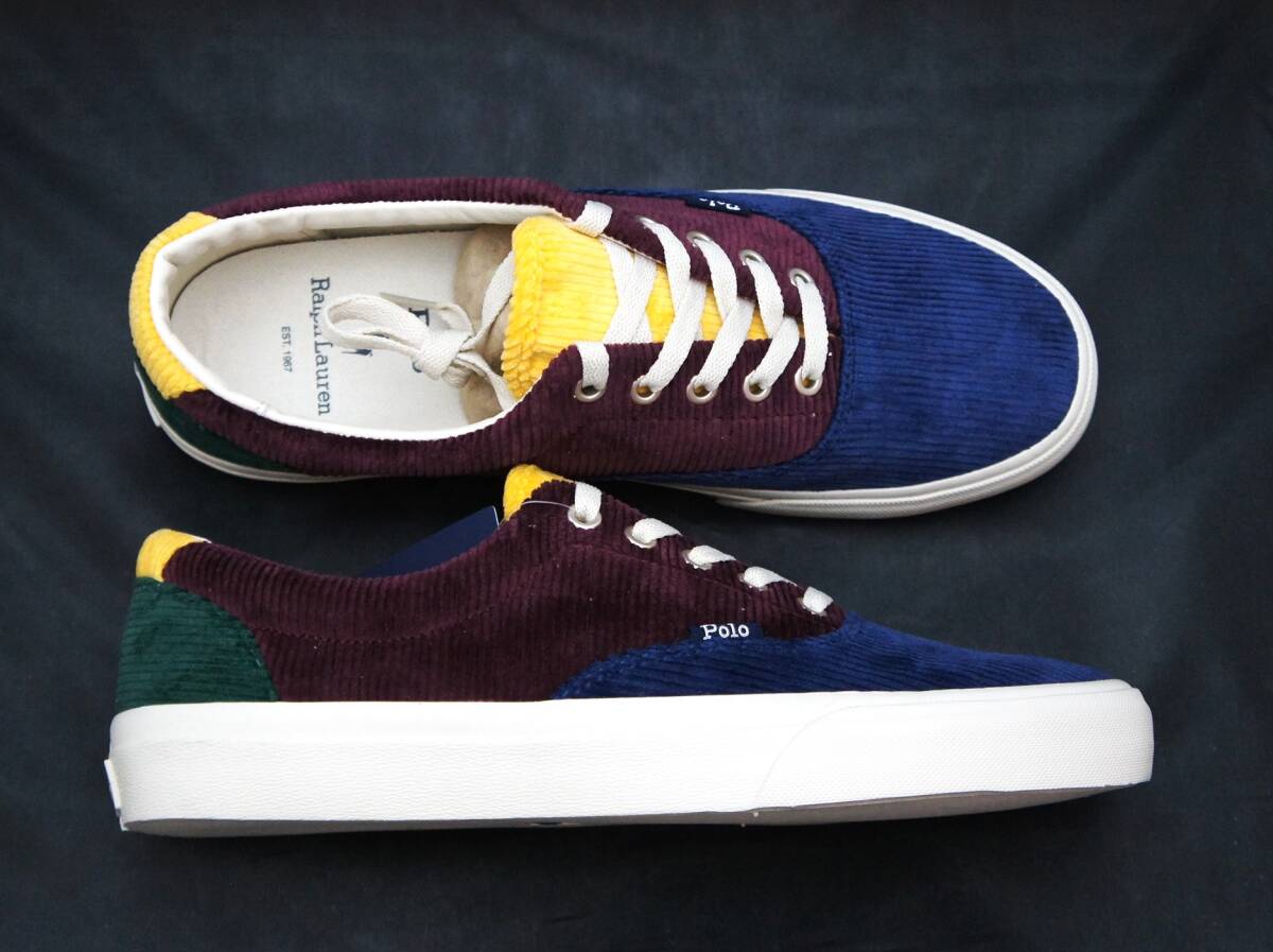 マルチカラーのコーデュロイ素材を採用したラルフローレンらしい配色の1足です。