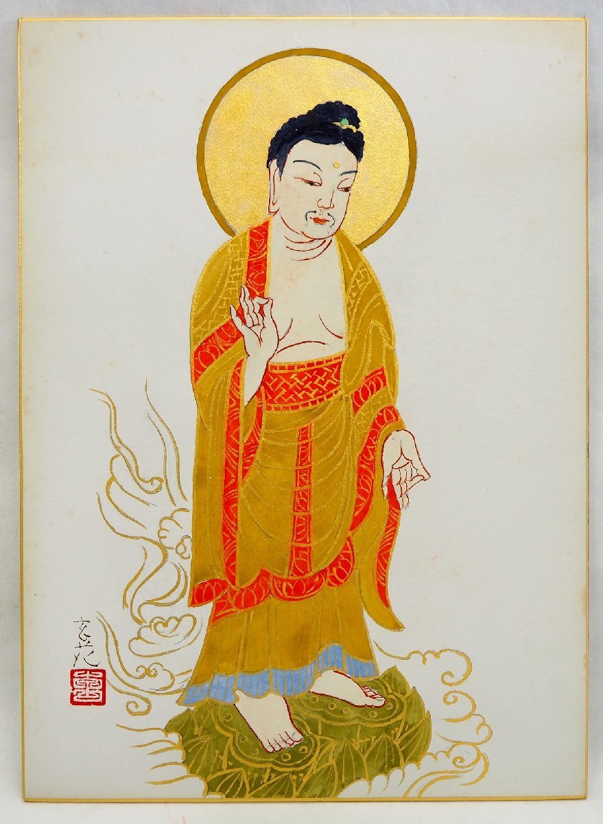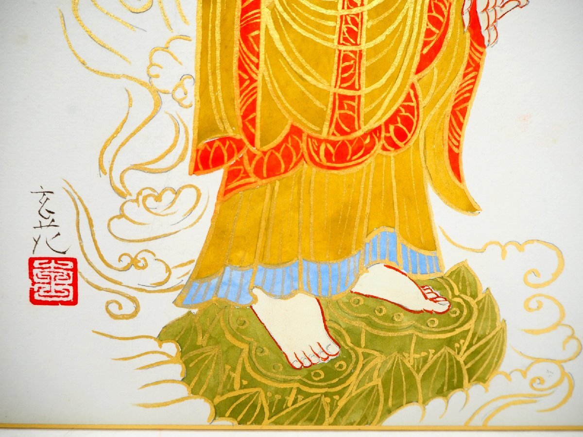 ★☆ 真筆保証【 今井玄花 「阿弥陀如来来迎」 色紙 水彩画 肉筆 】富山県出身 仏画 仏教美術 ☆★