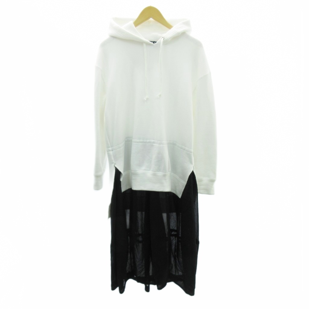 コムデギャルソンブラック COMME des GARCONS BLACK ドッキング ワンピース スウェット パーカー シフォン切替 シースルー S