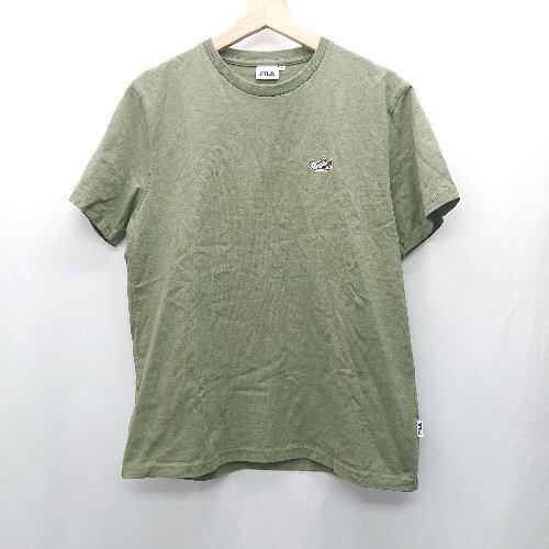◇ ⊂ FILA フィラ ワンポイント 半袖 Tシャツ サイズF カーキ メンズ レディース E