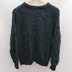 ◇ ikka イッカ ケーブル編み クルーネック シンプル 長袖 ニット セーター サイズL ネイビー レディース E