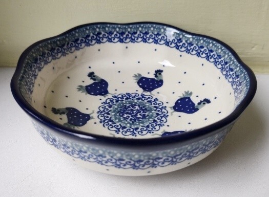 ポーランド ボレスワヴィエツ陶器 藍色ニワトリ ドット柄 15cm 小鉢/ボウル です。