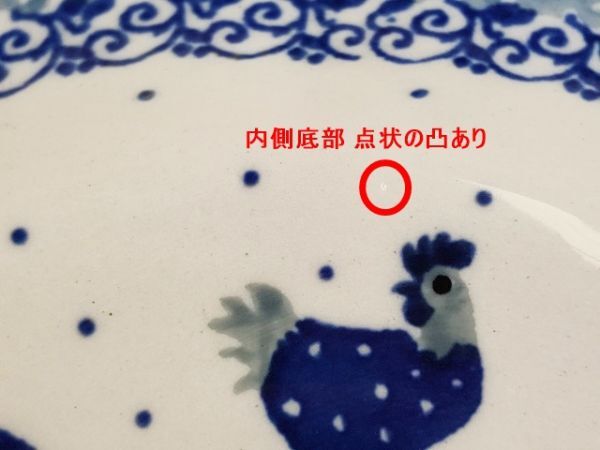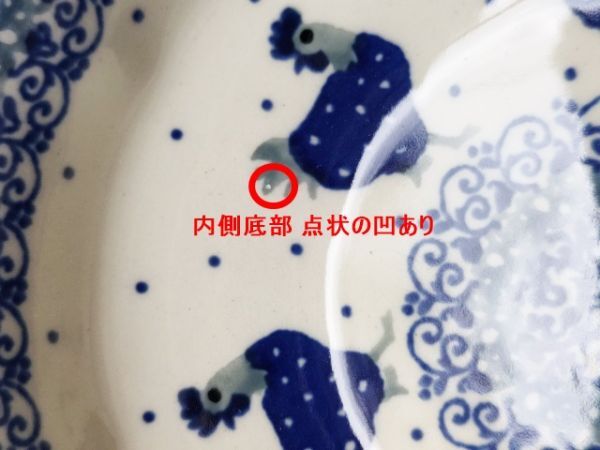【在庫2個】x698 ポーランド陶器 15cm 小鉢/ボウル 藍色ニワトリ ドット ポーリッシュポタリー 食器